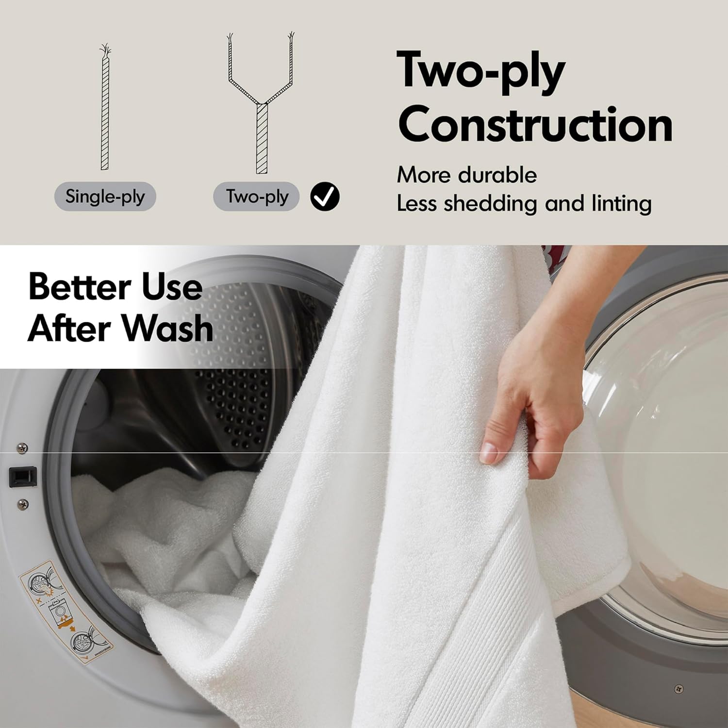 Spa-like quality towel set is made of premium long staple cotton for high absorbency and creates a luxuriously soft feel. The double ply loop construction increases thickness, and ensures less lint