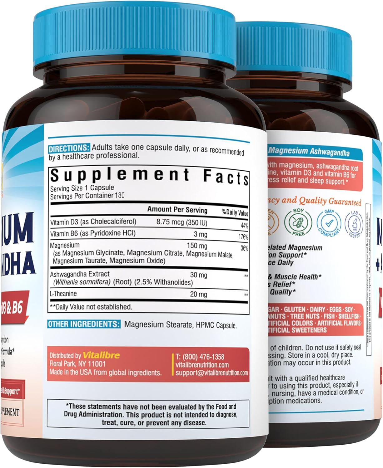 High Quality And Value: We are proud to affirm all Vitalibre magnesium supplements are manufactured in the U.S in facilities that adhere to strict Good Manufacturing Practices (GMP) guidelines. Every Vitalibre magnesium supplement is tested by qualified third parties for the highest quality.