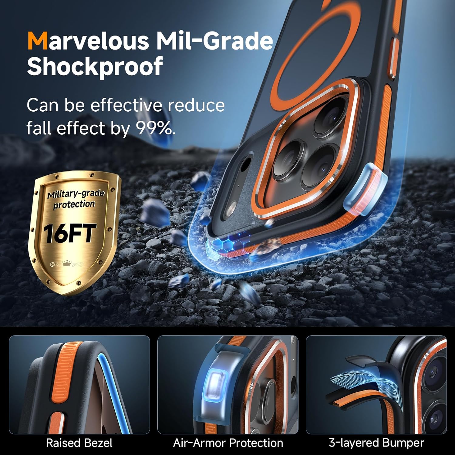 🛡️[𝑹𝒆𝒎𝒂𝒓𝒌𝒂𝒃𝒍𝒆 𝑴𝒊𝒍-𝑮𝒓𝒂𝒅𝒆 𝑺𝒉𝒐𝒄𝒌𝒑𝒓𝒐𝒐𝒇 𝑷𝒓𝒐𝒕𝒆𝒄𝒕𝒊𝒐𝒏] DOMAVER for iPhone 17 Pro Max shockproof phone case is certified by the military standard (MIL-STD-810G 517.6) and survived 8000+ drop tests up to 10 FT. Adopted with the durable hard PC back, highly resilient TPU bumper and exclusive patent 4-corner “Air-armer” , which reduces the impact of accidental drops. The case creates multiple protection to avoid accidental damage. All designs aim to provide comprehensive protection against drops and friction.