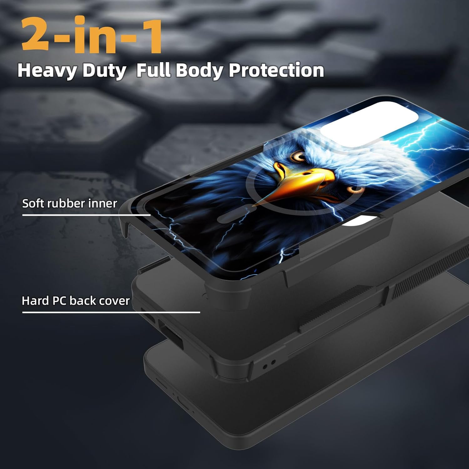 [Heavy Duty Protection] A dual-layer rugged case with a soft TPU inner shell and a hard PC outer back, provides excellent shock-absorbing and anti-drop protection for your device