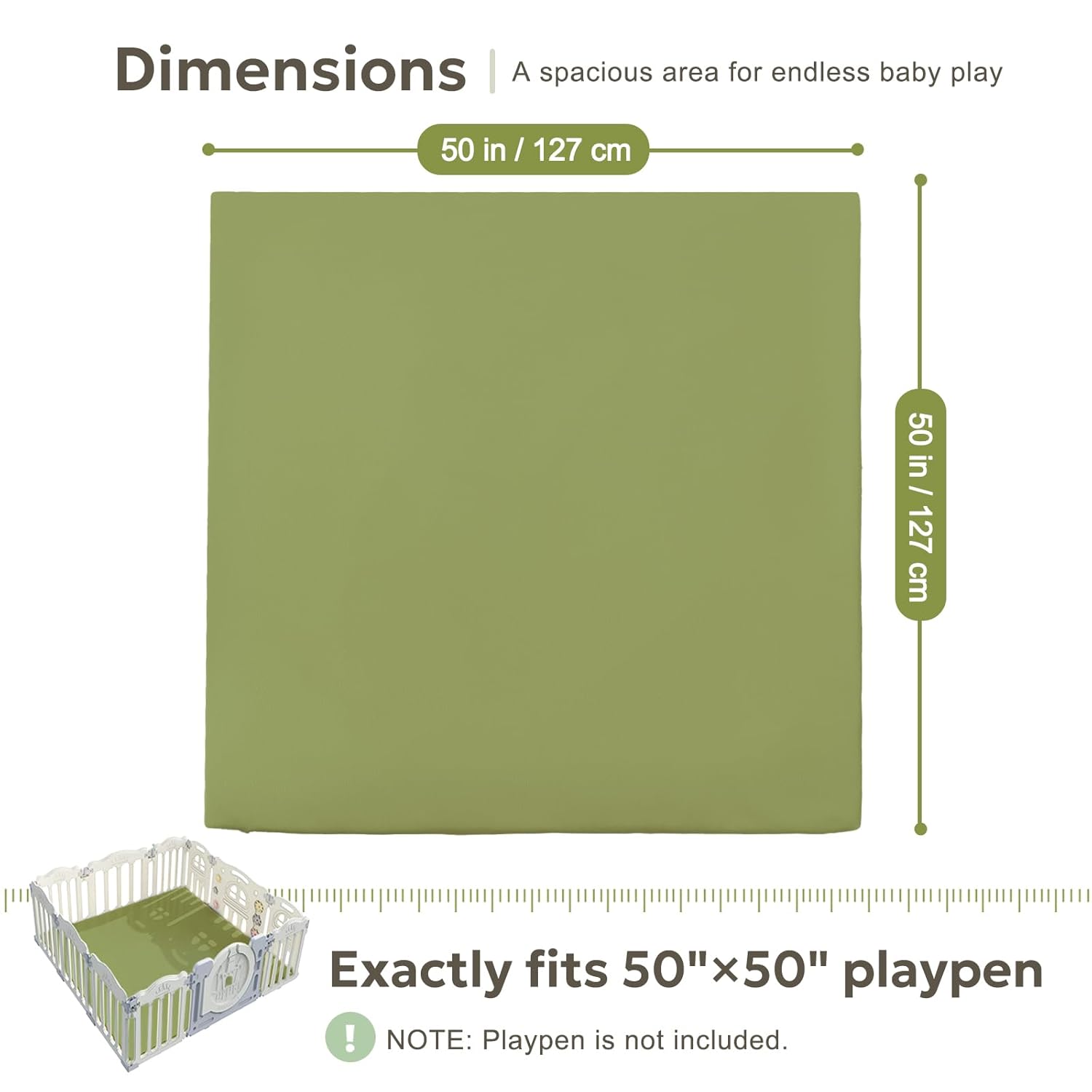 IDEALLY SIZED: Measuring 50×50 inches with a generous 1.2-inch thickness, this baby play mat provides a soft, cushioned space ideal for tummy time, early steps, and family bonding. The versatile size of this waterproof play mat fits into living rooms, nurseries, or playrooms and pairs precisely with playpens sized 50×50 inches, creating a snug and secure play area that adapts to your little one’s growing needs