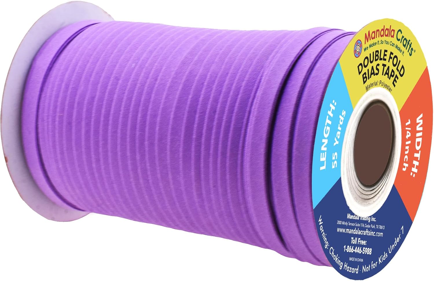 Mandala Crafts 55 Yards 1/4 Inch Violet Double Fold Bias Tape for Sewing – Bias Binding Tape for Quilting Binding, Hemming, Seam, and Fabric Piping