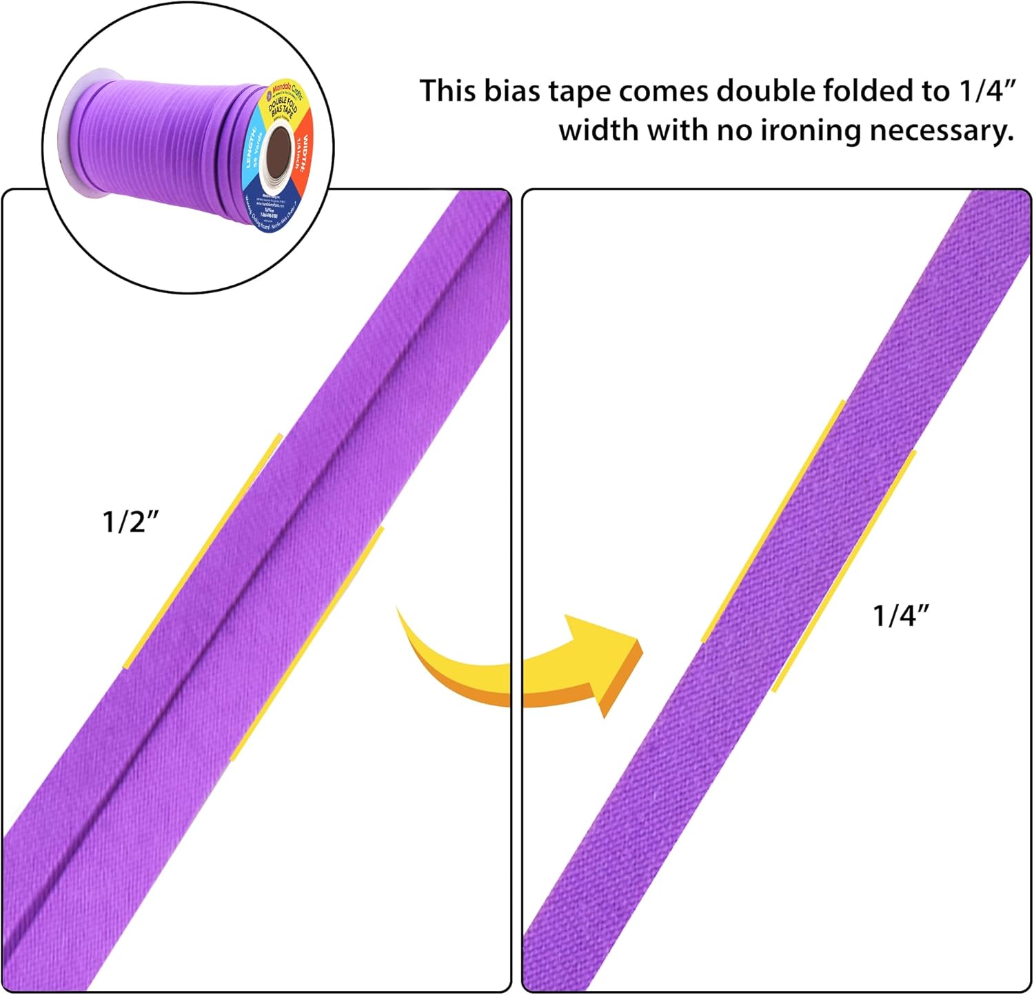 Versatile Hem Binding, Edge Binding, & Piping Sewing Double-Fold Bias Tape: The odorless violet trim for sewing makes great blanket violet fabric trim, pillow, purse, sofa, and quilt edge binding tape, and edging sewing tape for binding apparel.
