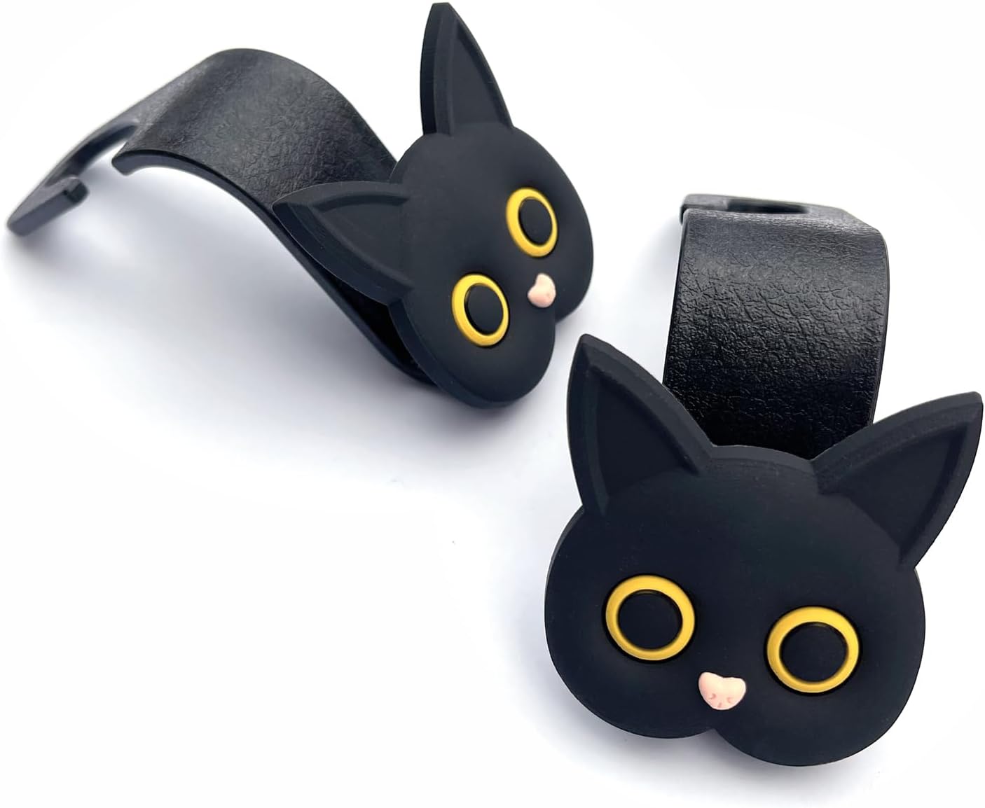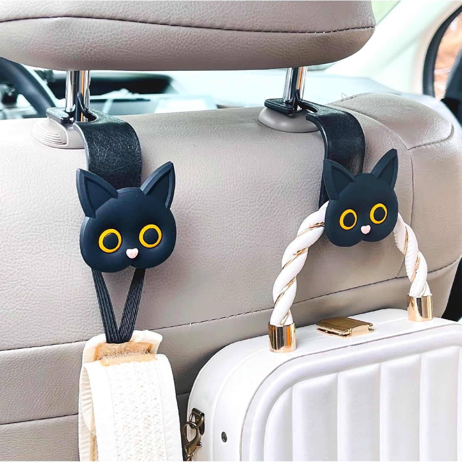 MaPctSy Car Seat Headrest Hooks – Cute Cartoon Cat Hook Vehicle Hanger for Purses, Bags, Coats, Umbrellas Holder (2pc Black)