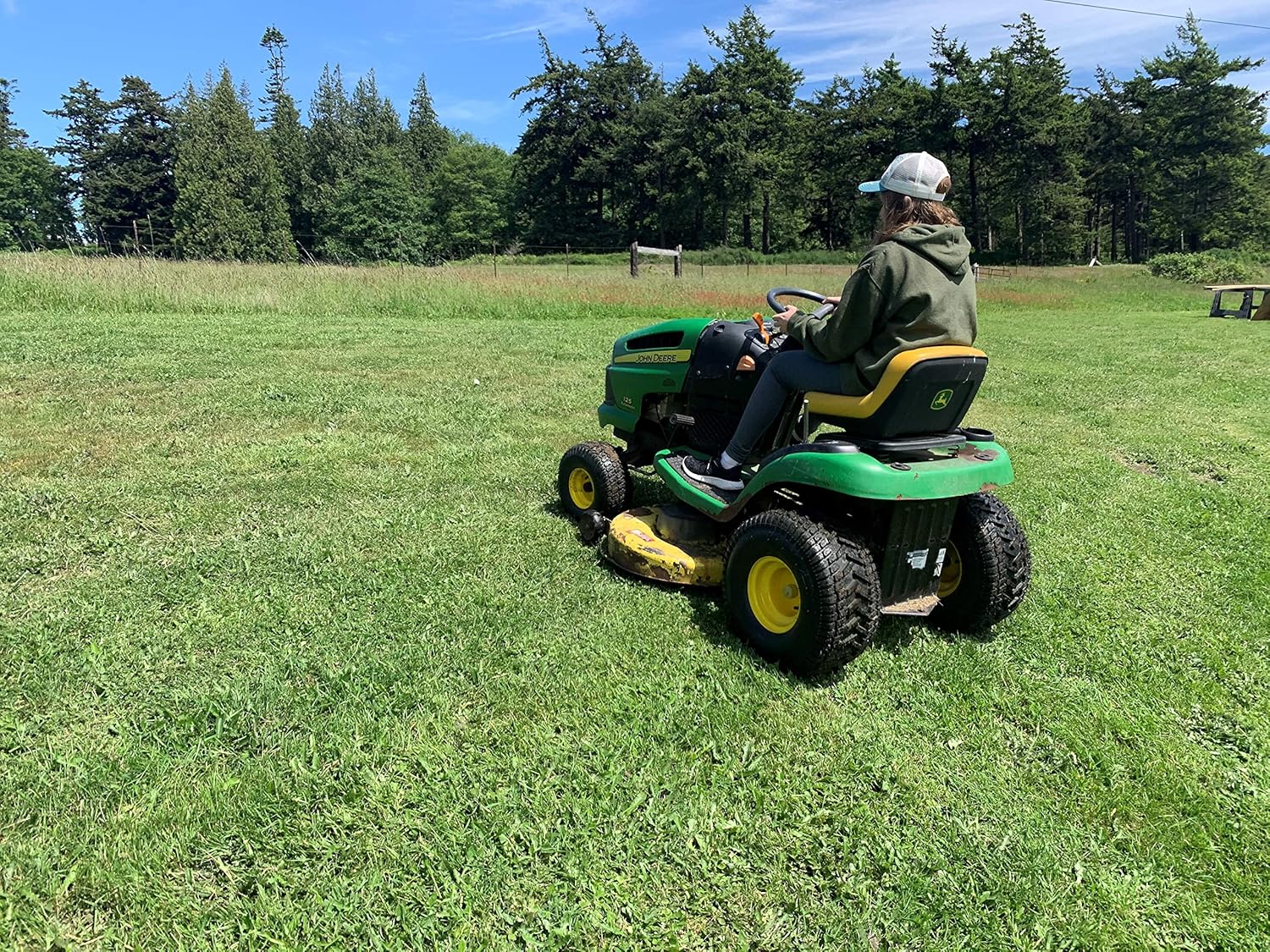 Marastar’s Turf Traction 20×8.00-8 Lawn Mower Tire and Wheel Assembly is your go-to replacement for enhanced traction and stability for John Deere Riding mowers and tractors with 20×8.00-8 or 20×10.00-8 rear tires. This tubeless, 4-ply tire combines Turf Master tread for stability and Turf Lug tread for superior traction down the middle. The tire is pre-mounted onto a yellow powder-coated steel wheel with a 3.5” offset hub, 3/4” bore with 3/16 keyway, making it the ideal replacement option for your lawn mower or lawn tractor. Check your tire sidewall or owner’s manual for compatibility. Marastar strives to provide consumers with products that are easy to purchase and install, and built to take on everyday challenges. Whether you use our products for work or play, we just want you to enjoy the ride.