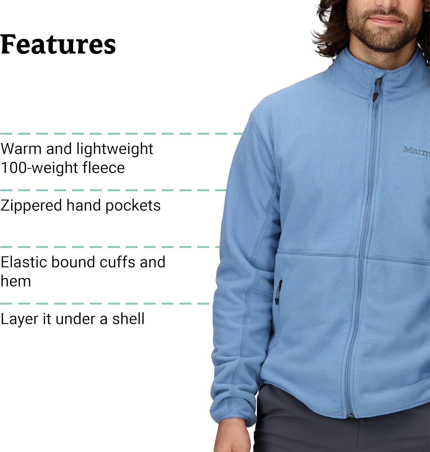 MARMOT Men’s Rocklin Full-Zip Jacket – Classic, Warm, Lightweight 100-Weight Fleece Layer