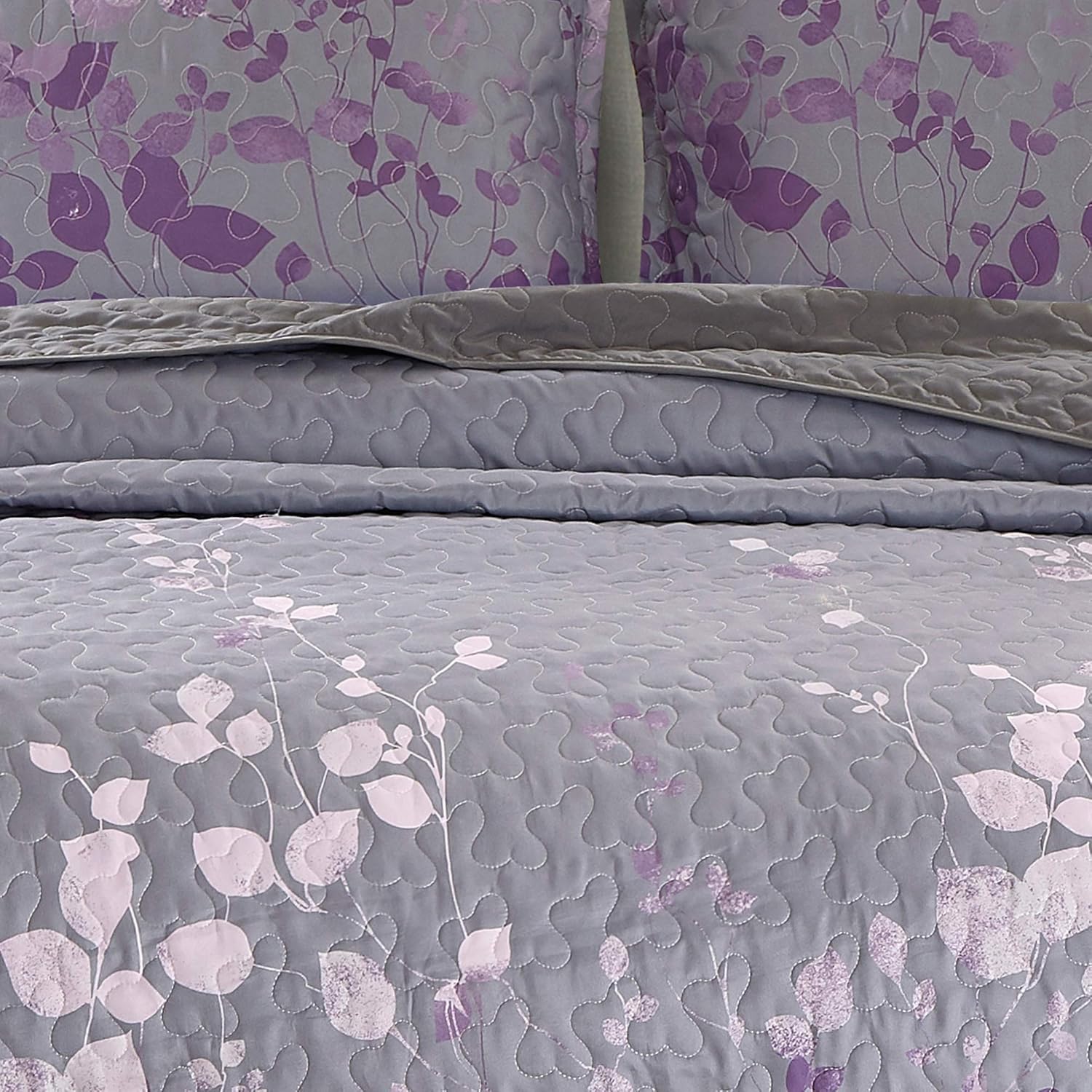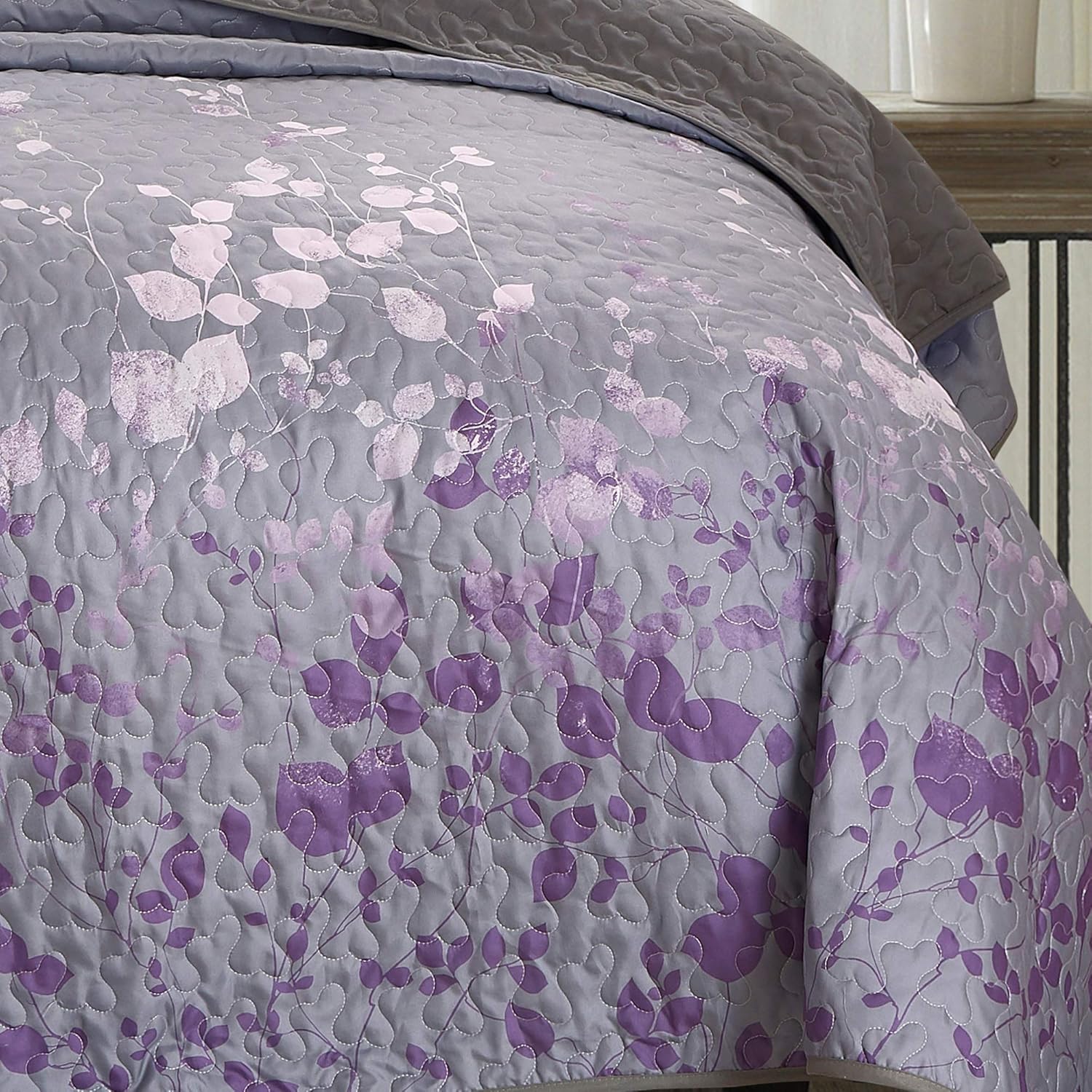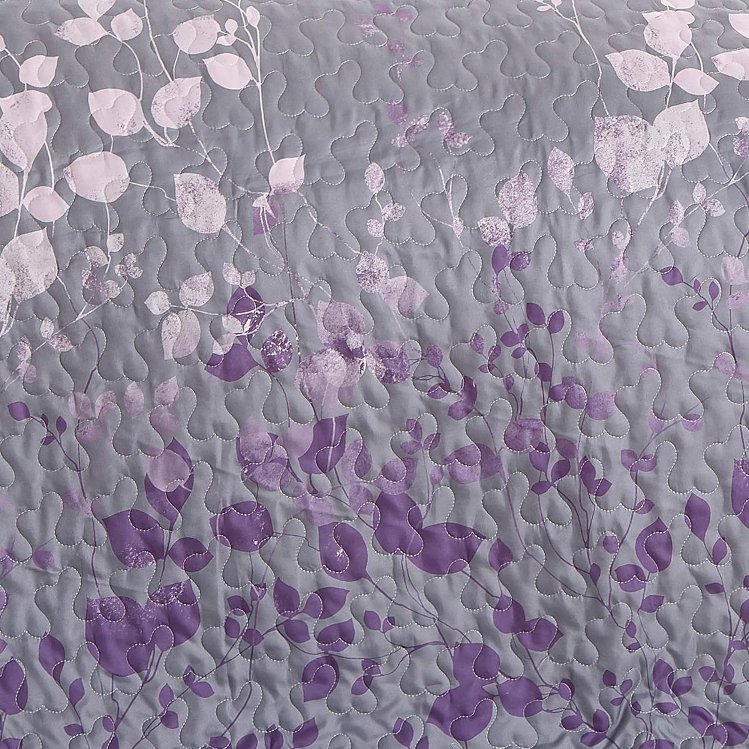 Masterplay 3-Piece Fine Printed Oversize (118 inchx95 inch ) Quilt Set,Bedspread Coverlet King Size Bed Cover (Dark Grey,Purple Gradient,Vine)