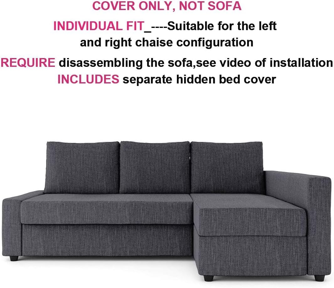 MASTERS OF COVERS Snug Fit Friheten Slipcover for The IKEA Friheten with Chaise Corner Cover, Sofa Bed Cover, Sectional Slipcover Replacement (Dark Grey) (Cover Only!Not Sofa!)