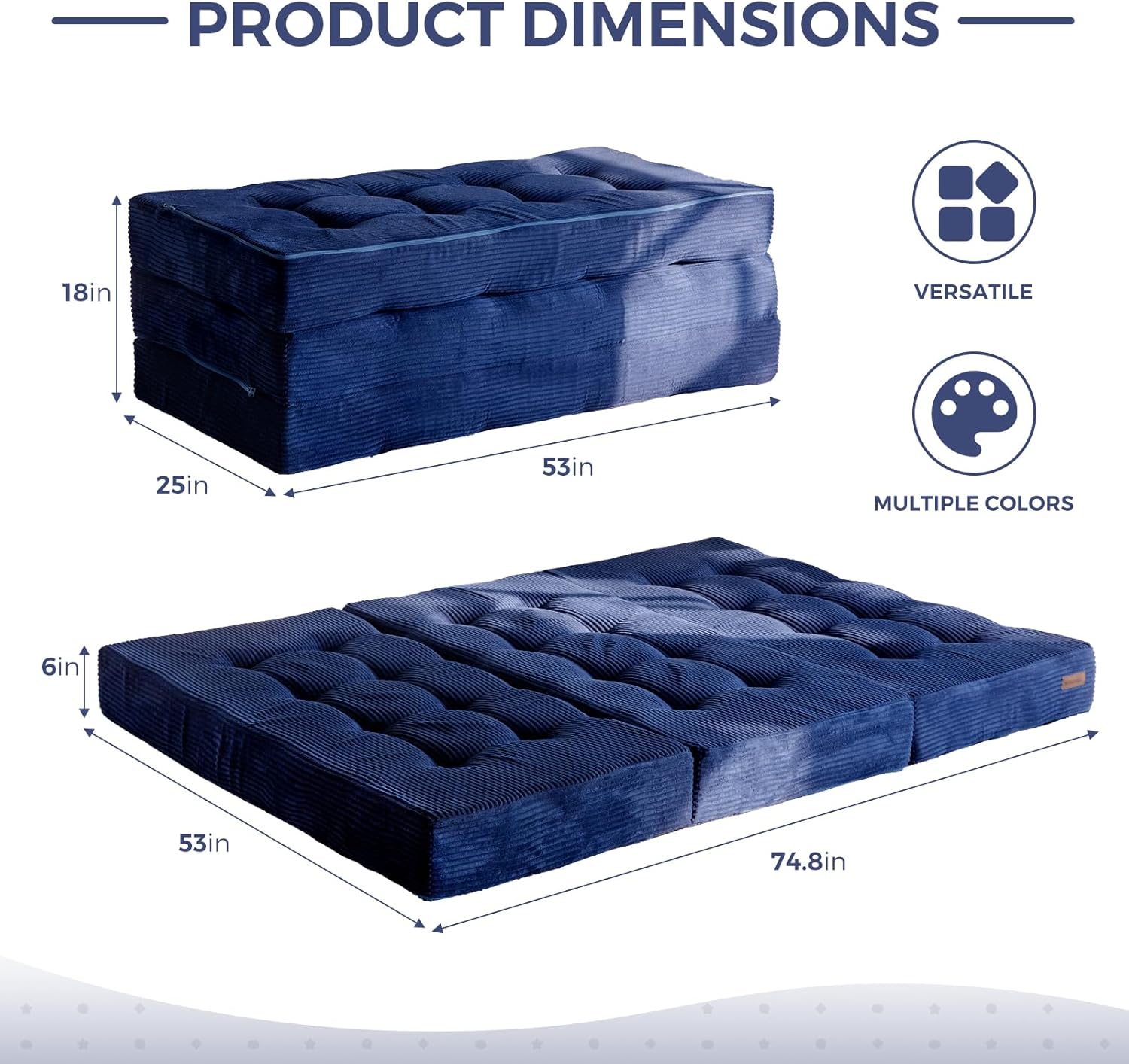 MAXYOYO Tri-Fold Mattress, 6 Inch Tufted Folding Mattress Full Foam Bed, Foldable Floor Mattress Guest Bed Mattress Topper Portable Camping Sleeping Bed with Corded Fabric, Navy, 53″x75″