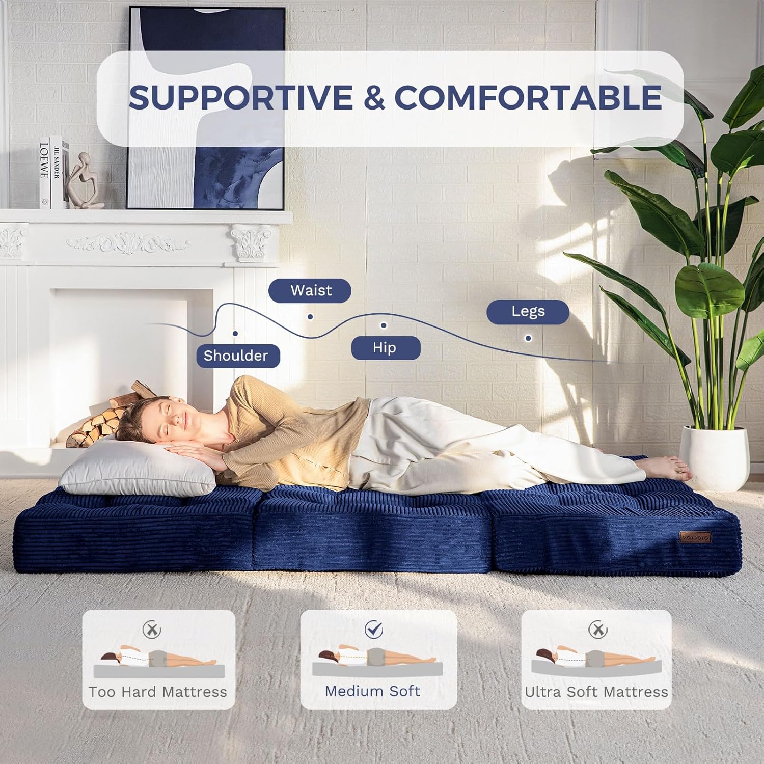 Tufted Craft Design: The topper of the foldable triple-fold mattress, made of ultra-soft and breathable corduroy fabric on the top, can keep you feeling fresh. The tufted crafting design adds a personalized style to the foldable mattress and also brings fun to your life