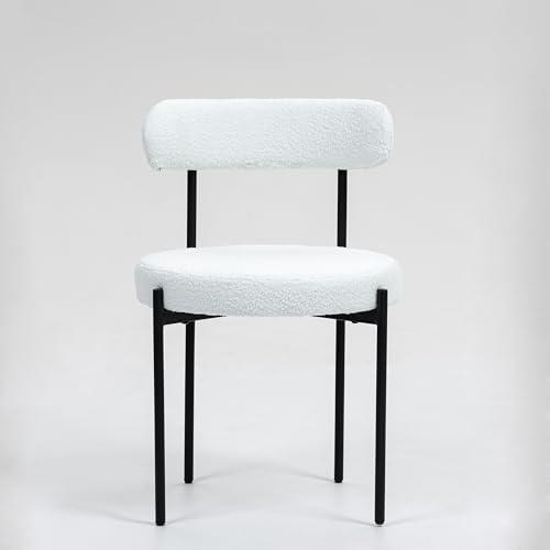 MCH White Modern Mid-Century Boucle fabric Upholstered Round Dining Chairs matching Dining Room Table(Set of 2&4)