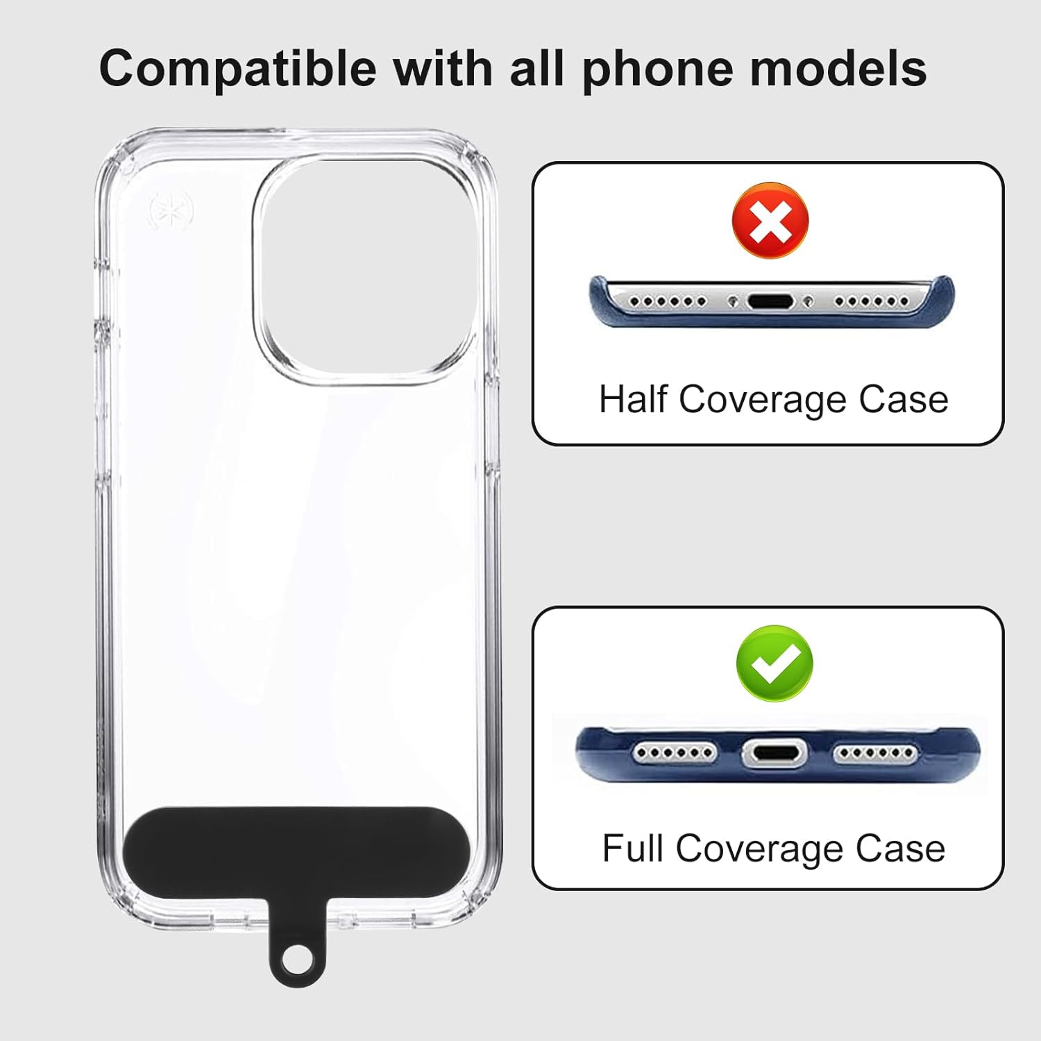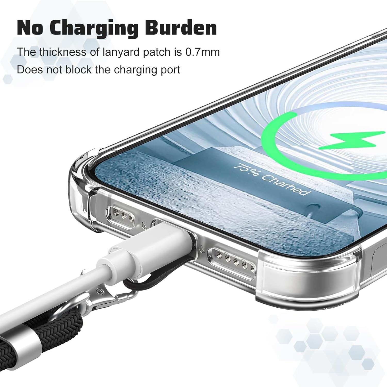 *Easy to Use: Insert the mat into the charging hole of the fully covered phone case, then plug your phone and buckle the lanyard to the metal ring.Please note that half covered phone case is not supported.