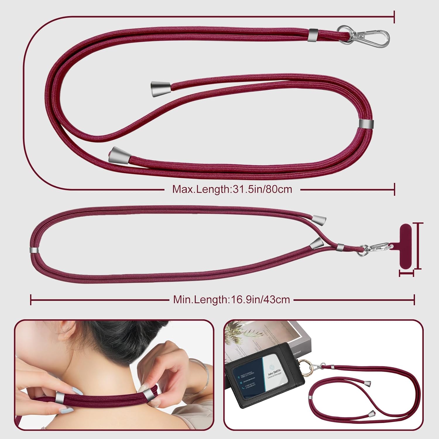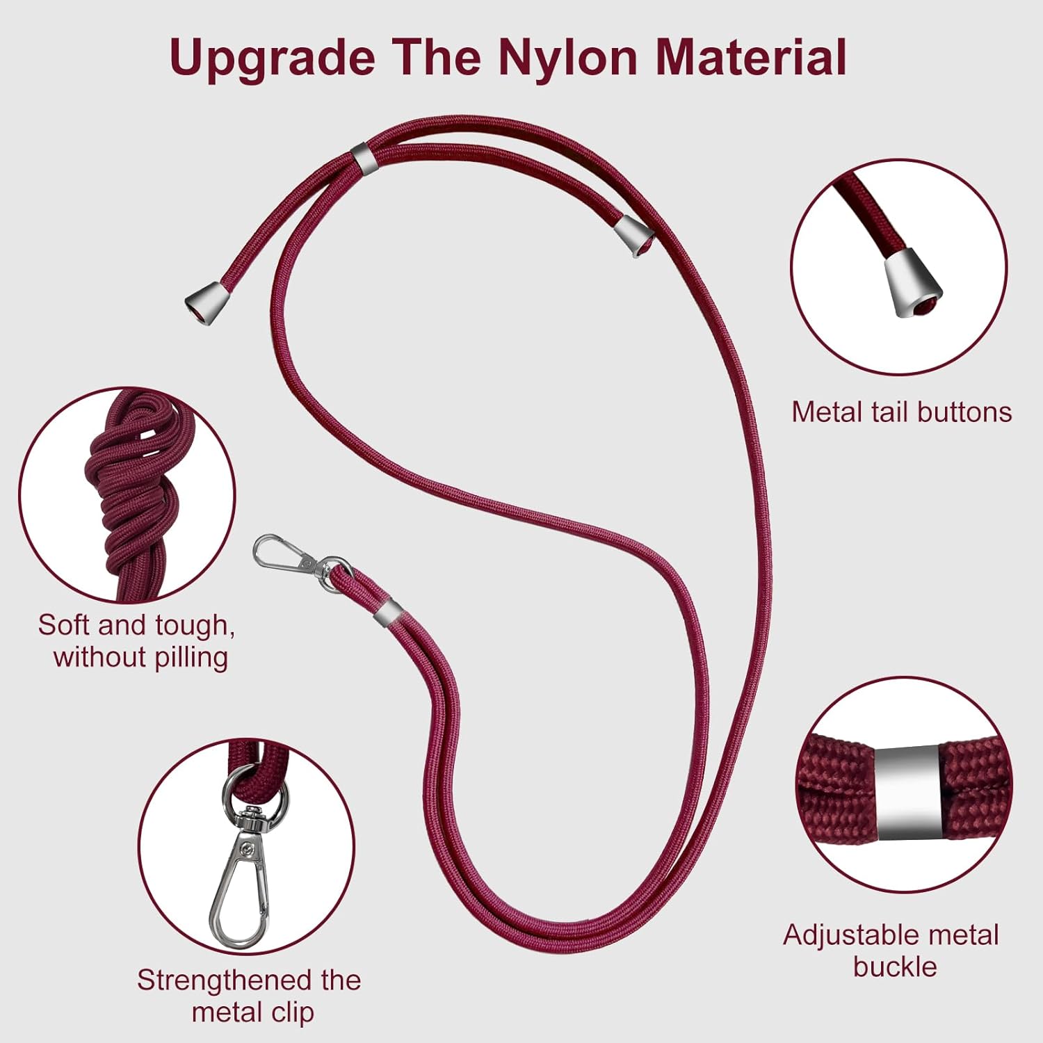 *Premium Material: This phone lanyard is made of soft and sturdy nylon, the length is adjustable, durable and odor-free.