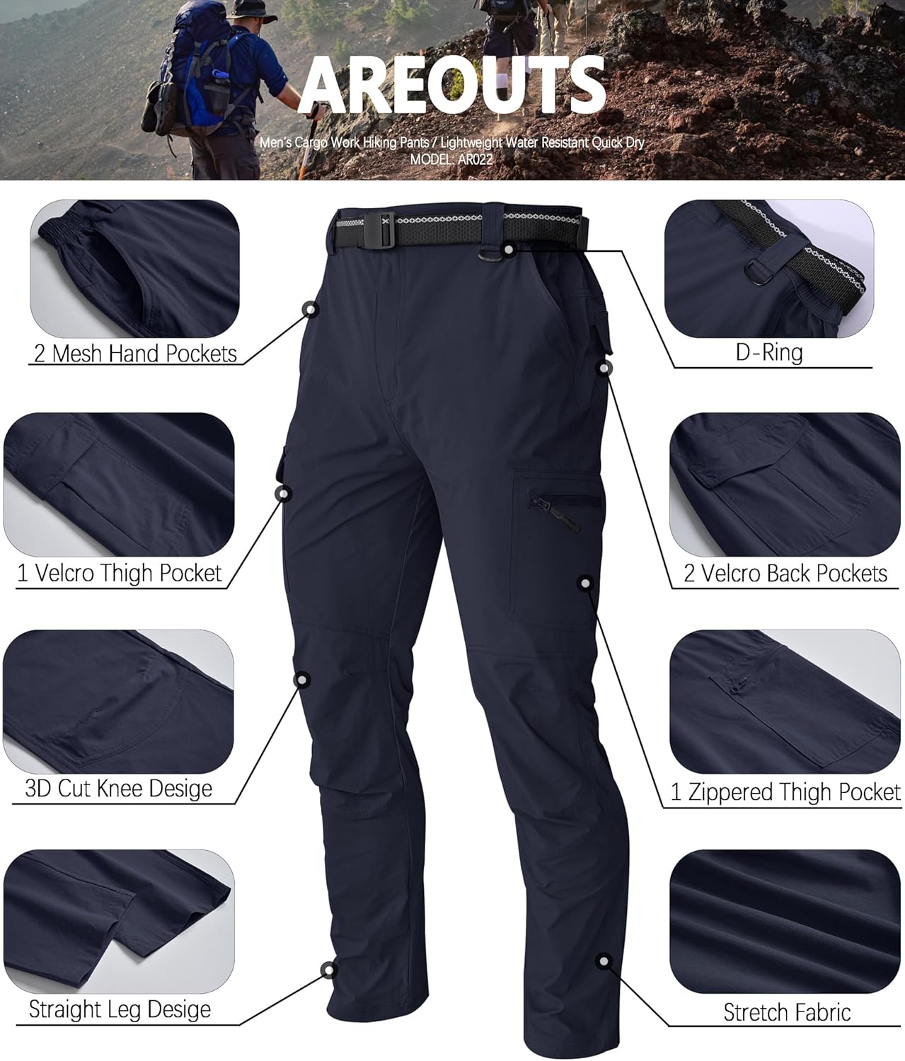 Men’s Cargo Work Hiking Pants Lightweight Water Resistant Quick Dry Fishing Travel Camping Outdoor Breathable Multi Pockets