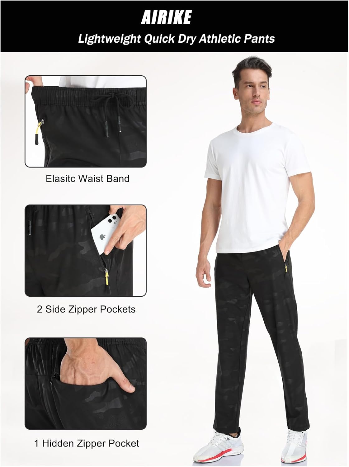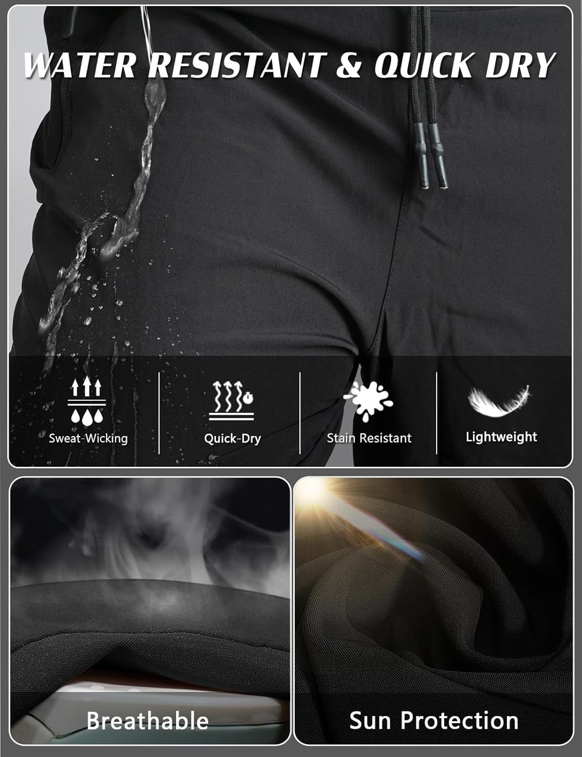 Men’s Elastic Waist Hiking Pants Water Resistant Quick-Dry Lightweight Outdoor Sweatpants with Zipper Pockets