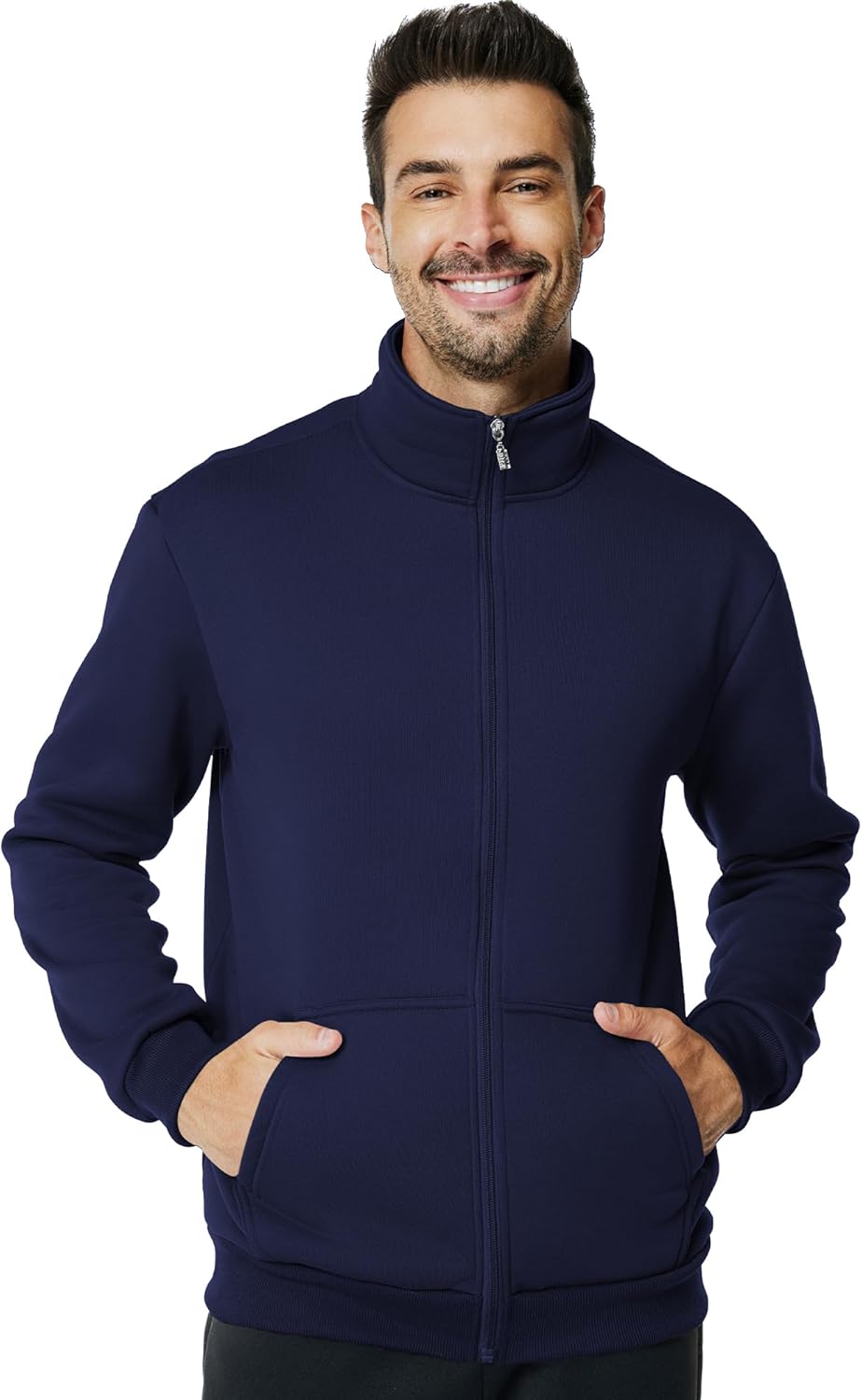 Men’s Fleece Full Zip Up Sweatshirt Casual Lightweight Long Sleeve Mock Neck Jackets with Pocket