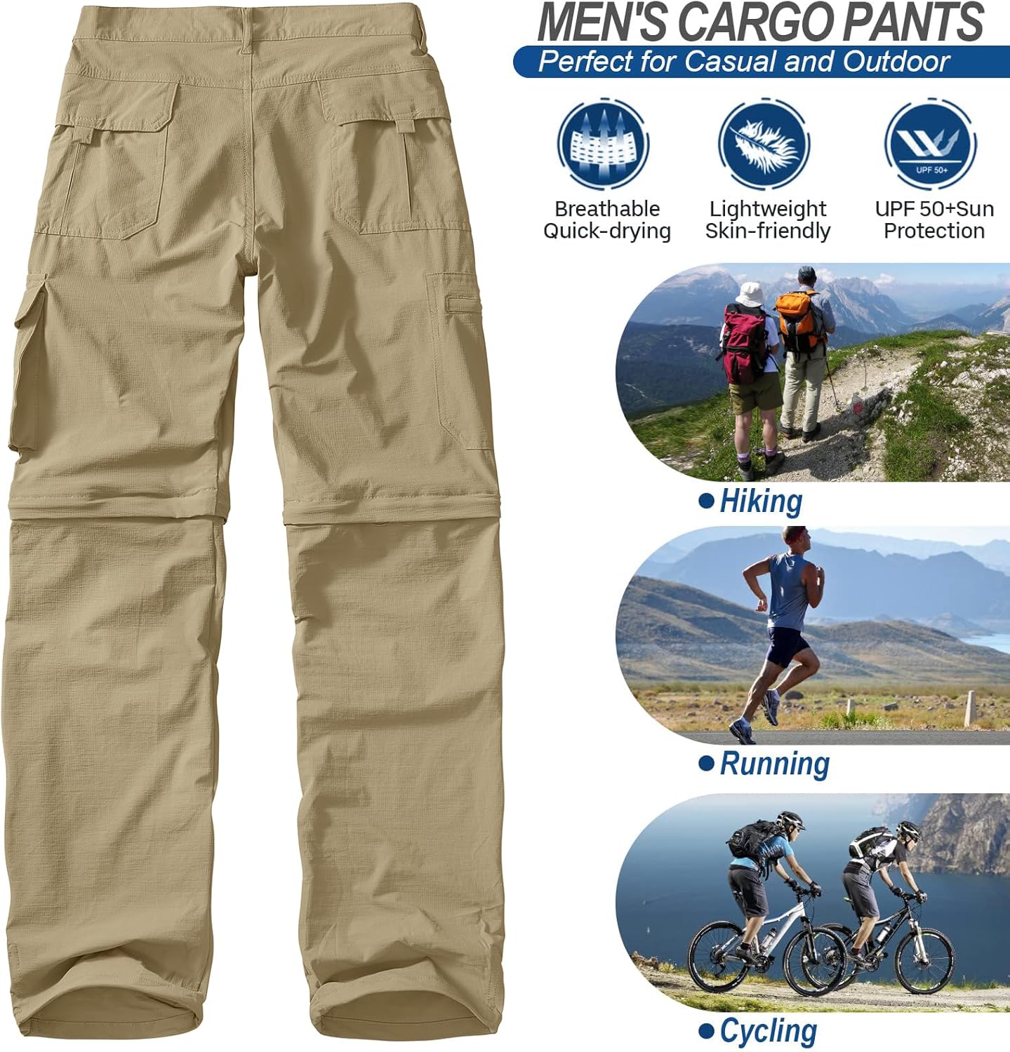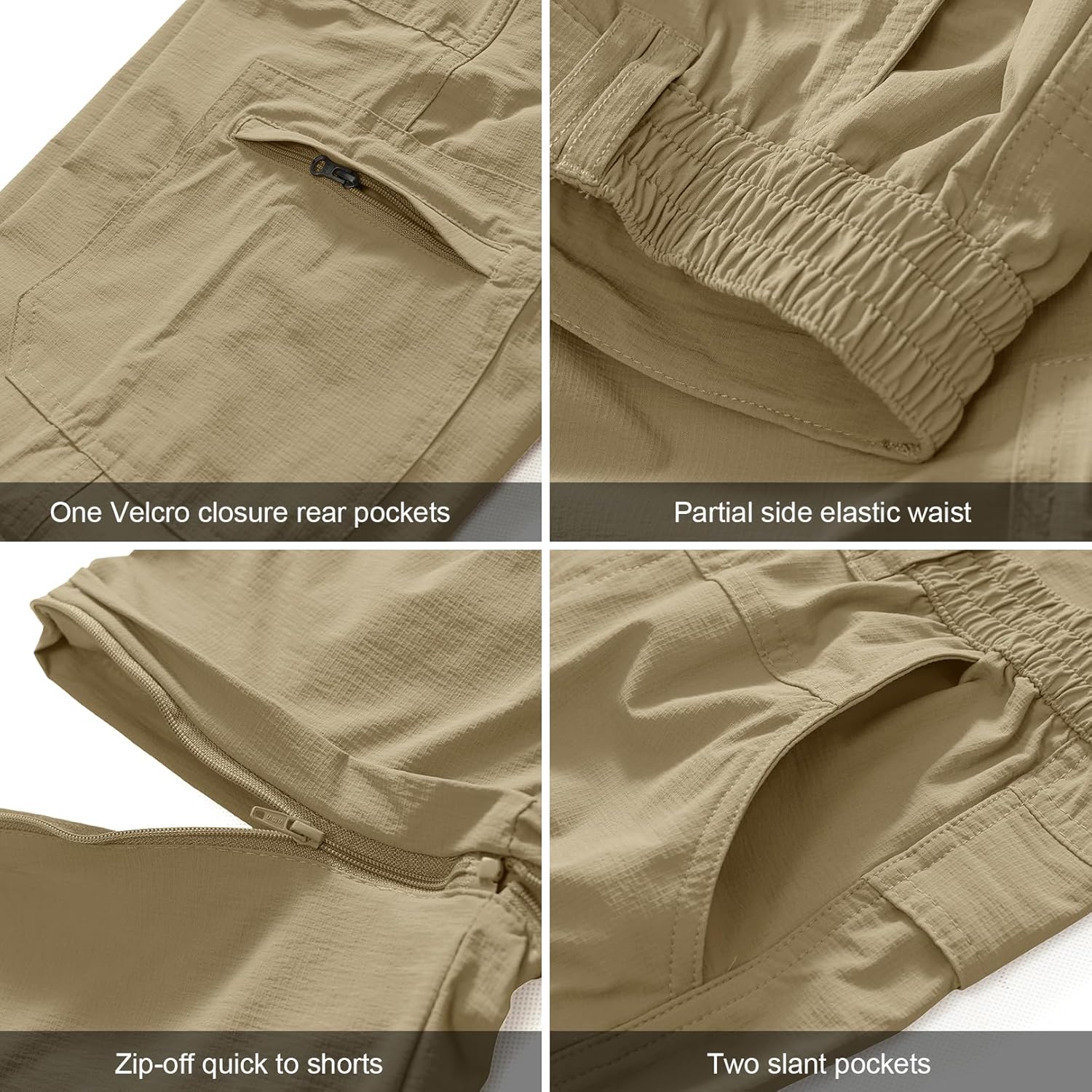 Men’s Outdoor Quick Dry Convertible Lightweight Hiking Fishing Zip Off Safari Trousers