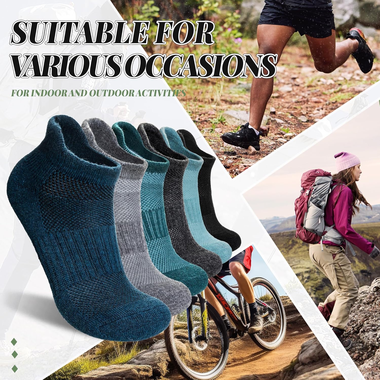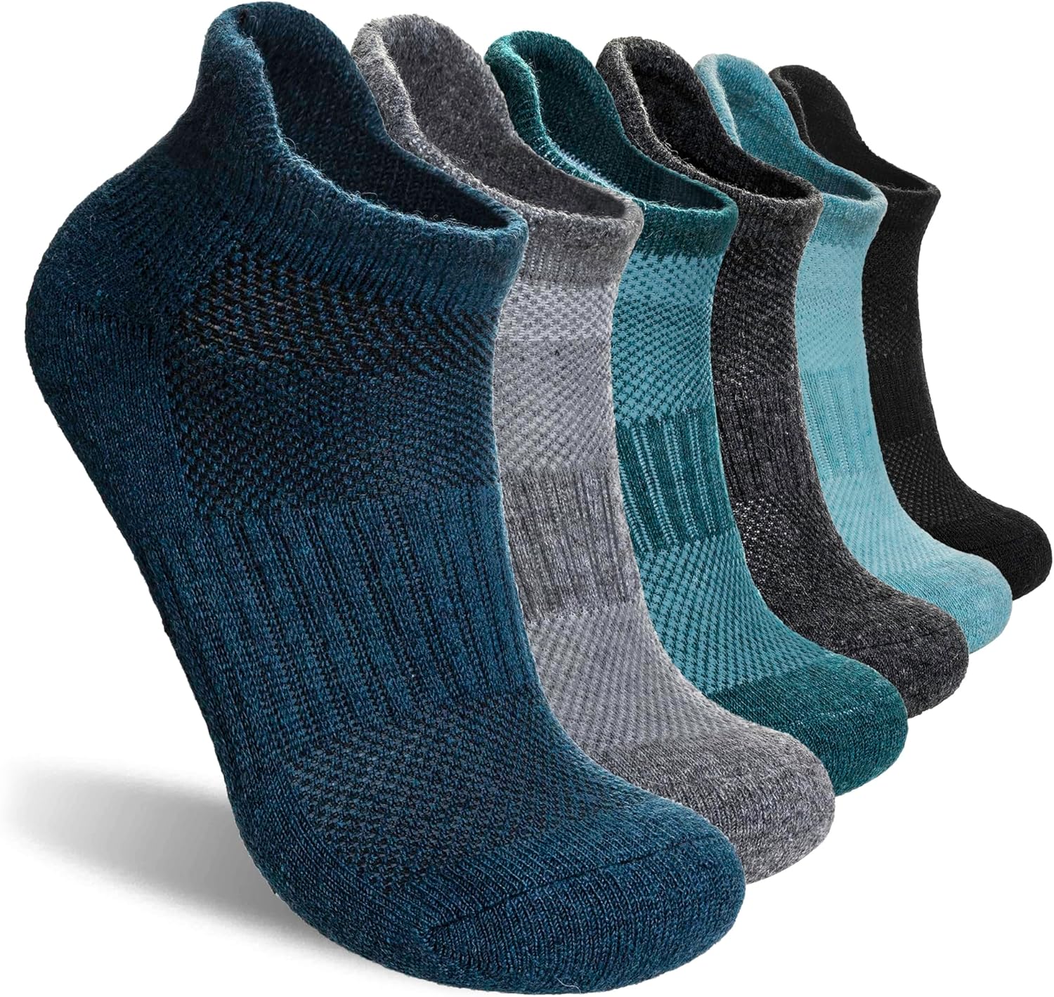Merino Wool Ankle Hiking Socks For Men & Women No Show Running Athletic Support Thick Cushioned Breathable Socks 6 Pairs