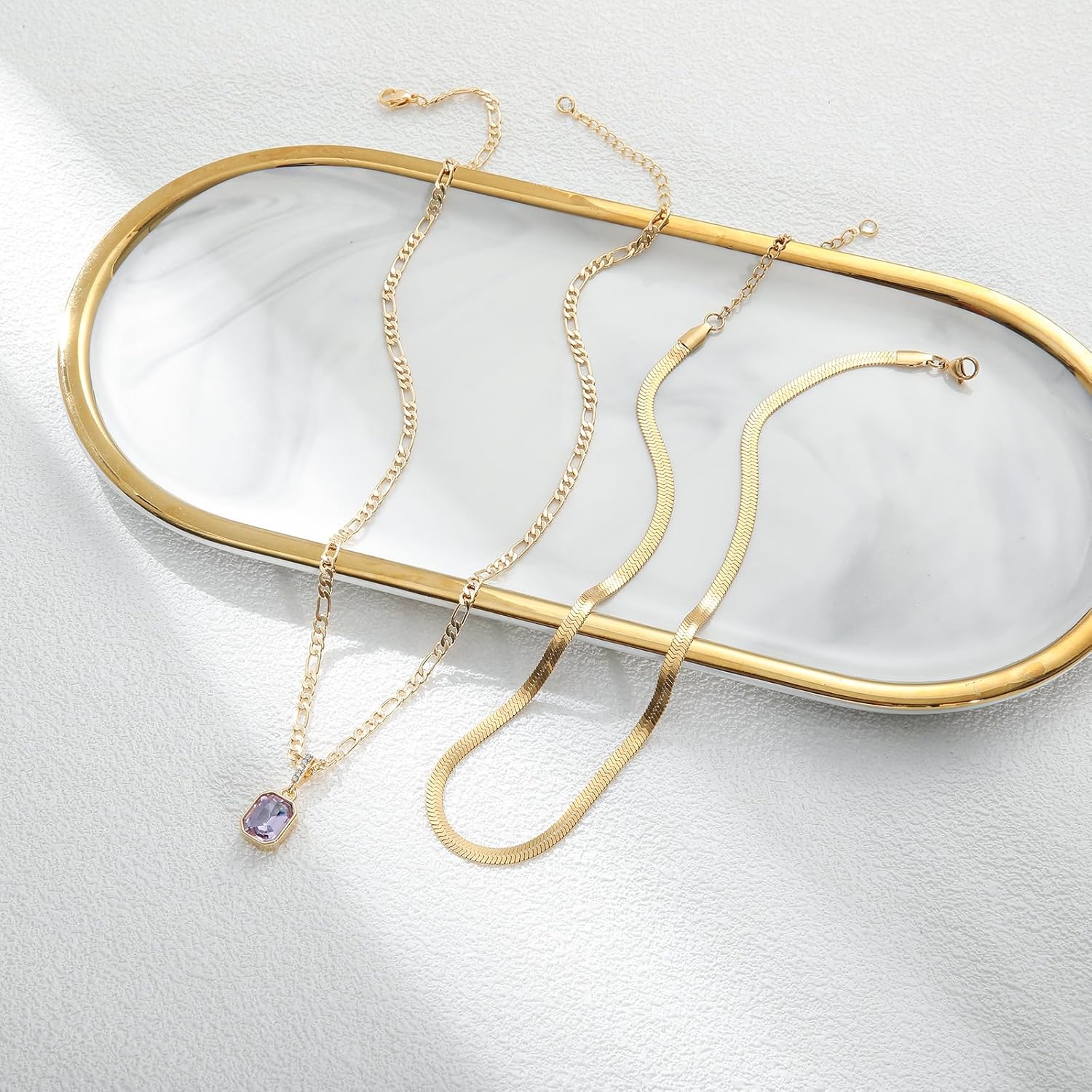 These two necklaces include a 3mm Figaro chain crystal pendant necklace and a 4mm snake chain choker necklace.