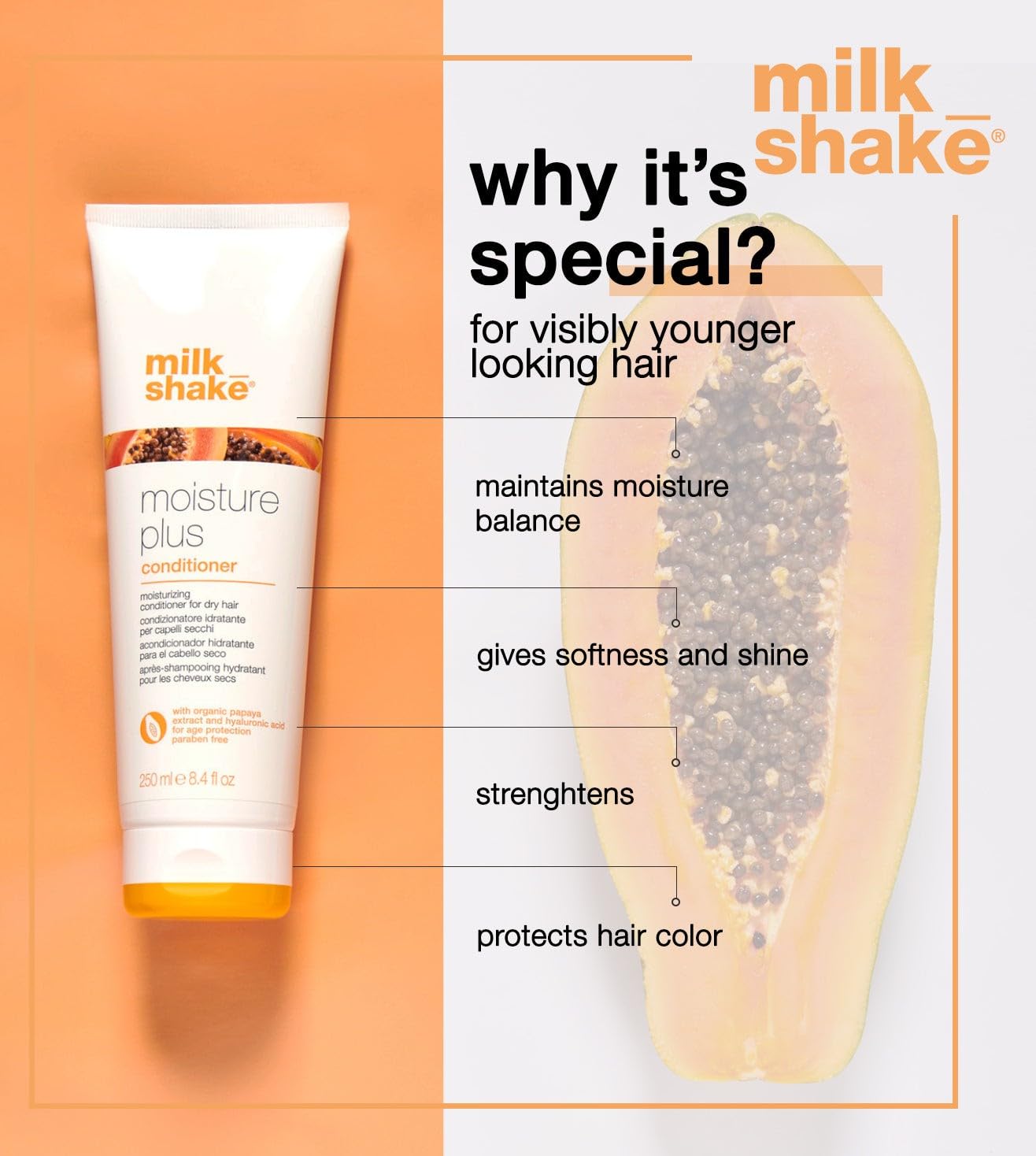 milk_shake moisture & more conditioner creamy formula to hydrate and soften dry hair for smoother, shinier, easy-to-manage hair
