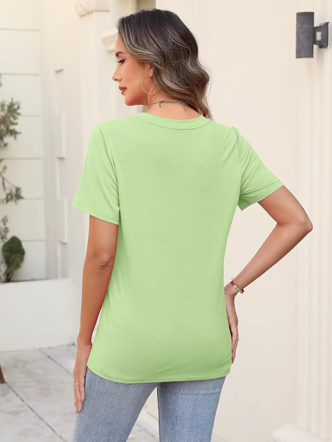 Model Show of Minetom Women’s T Shirts Short Sleeve V Neck Tops