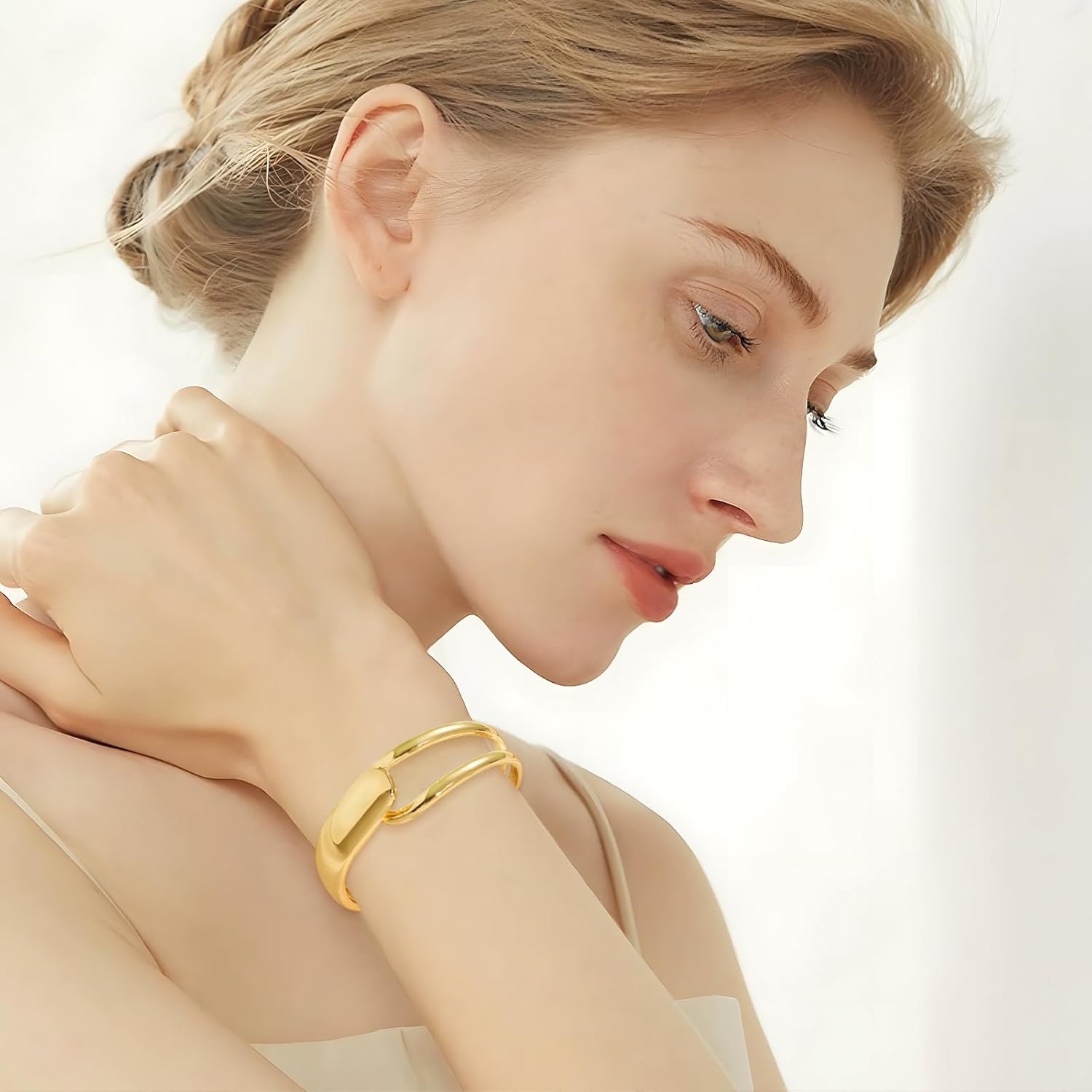 Minimalist Gold Wrap Bracelet for Women with Hinged Closure Sleek Chunky 14k Gold Plated Open-Ended Stacking Cuff Bangles Bracelet