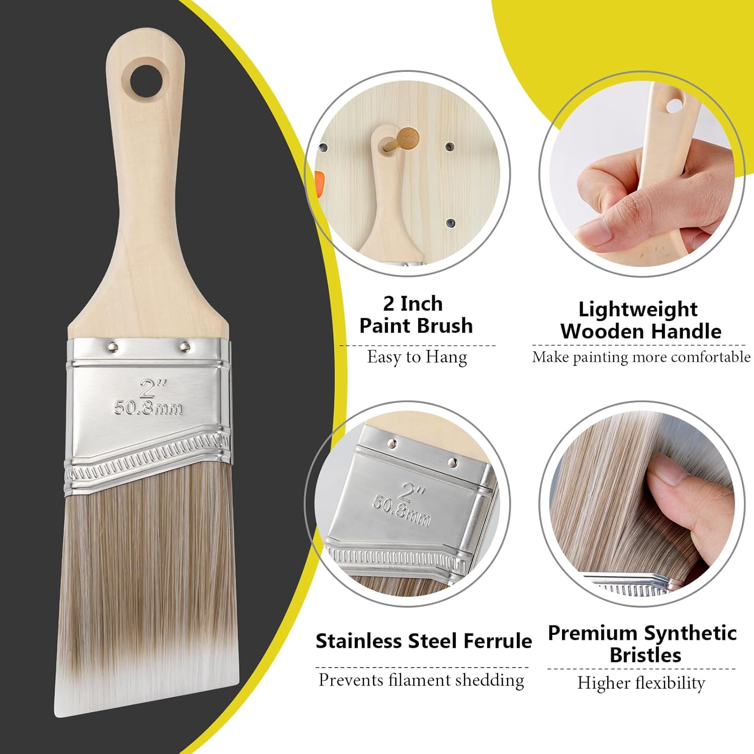 Angled & Round Designs: Our professional trim brushes are expertly crafted with angled and round designs to help you tackle various painting supplies tasks. The 2″ and 2.5″ angled brushes glide along trim and baseboards more faster, while the round brush is ideal for curved surfaces