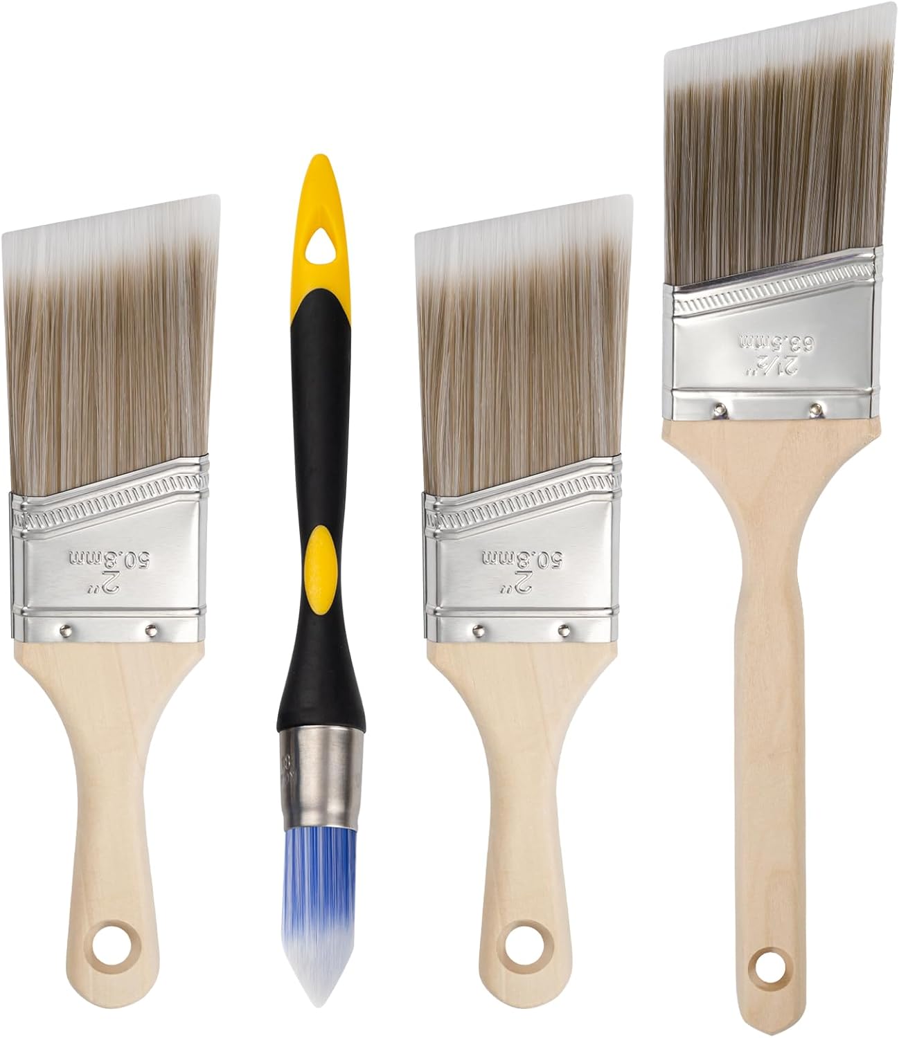 Complete Paint Brush Set: The Mister Rui paint brush set includes 4 essential paint brushes designed for home improvement projects, featuring 2x 2″ short handle brushes for tight corners, 1x 2.5″ long handle brush for doors and walls, and 1 round brush perfect for detailed work