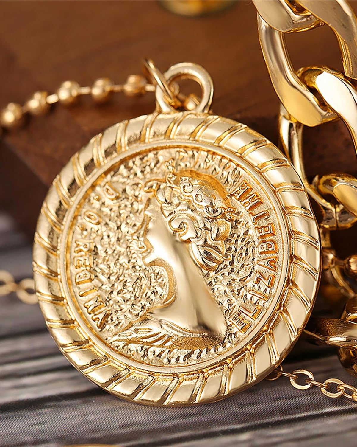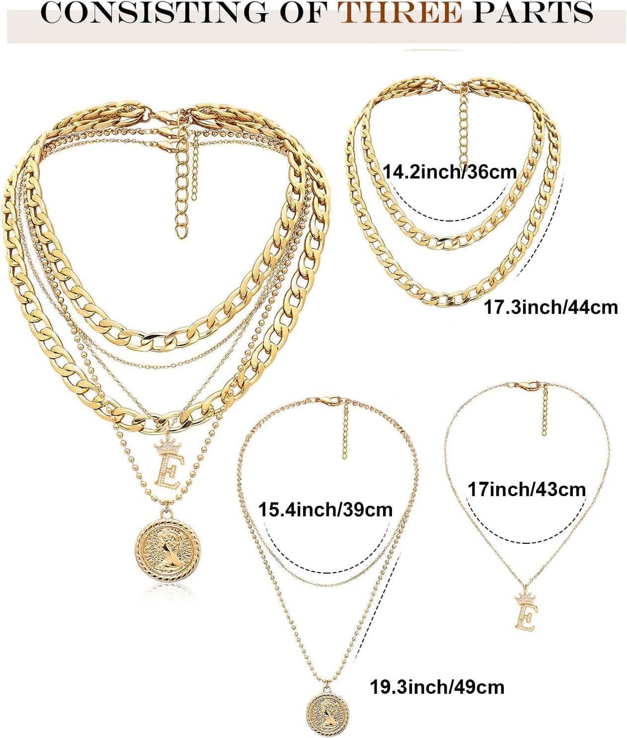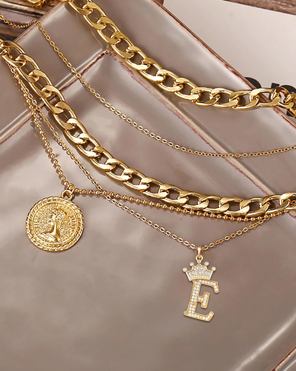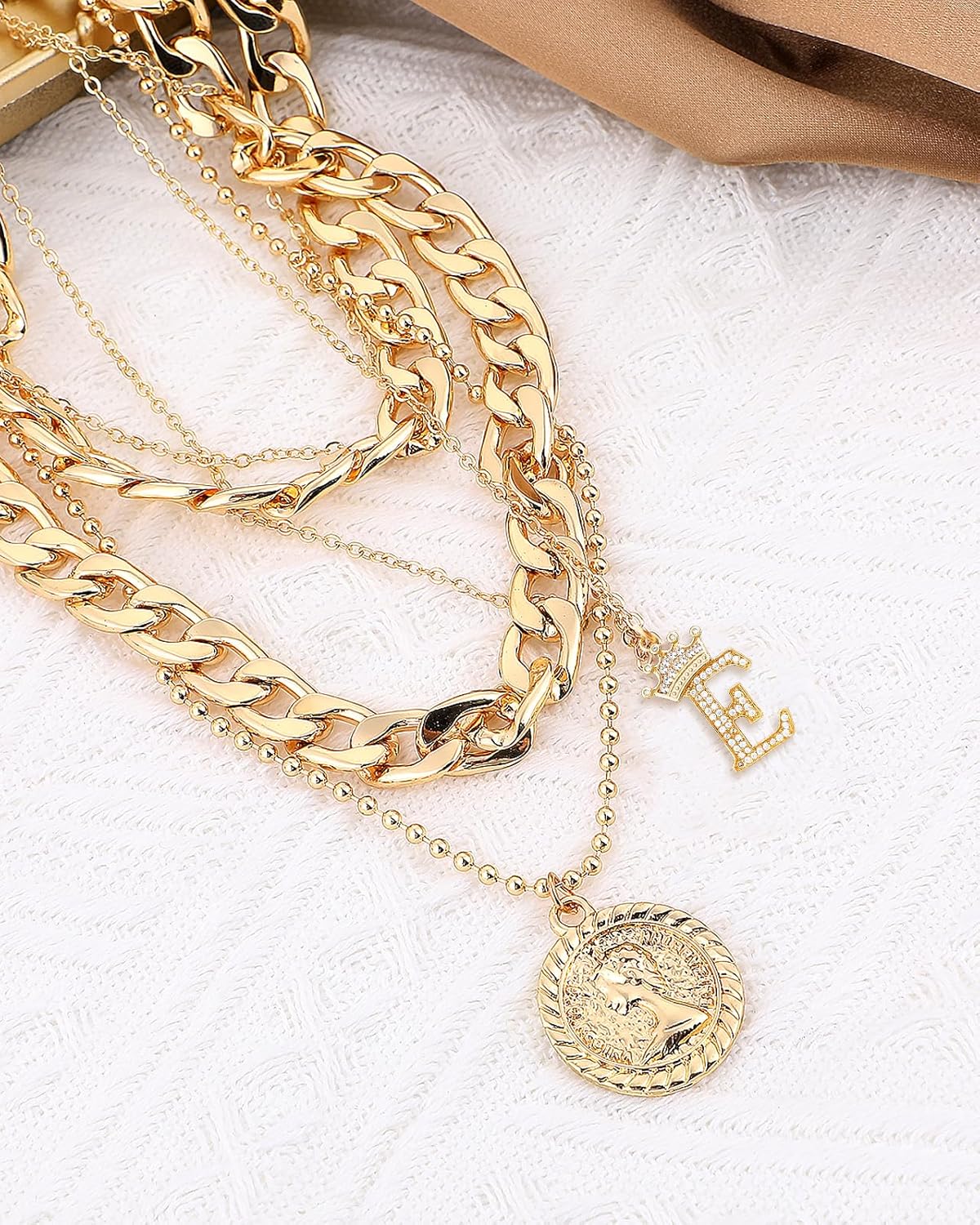 MJartoria Layered Necklaces for Women Trendy Retro Coin Crown Letter Pendant Necklace Dainty Chunky Chain Choker Necklaces for Jewelry Birthday Gifts