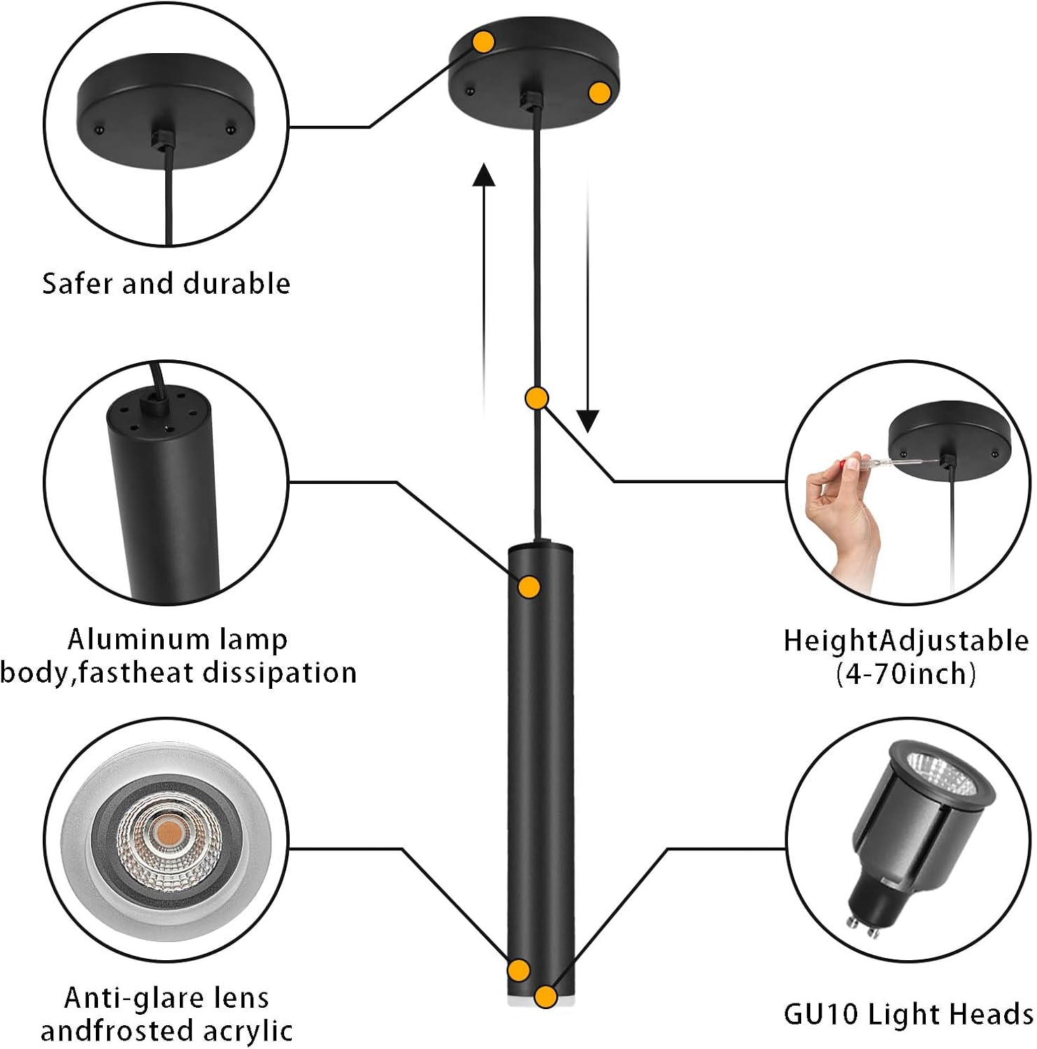 (WIDE APPLICATION)Modern Pendant Light Fixture can be used on the ceiling. Black pendant hanging lights are perfect for kitchen island, dining room, bedroom, bathroom, bar, oversink, hallways, living room.