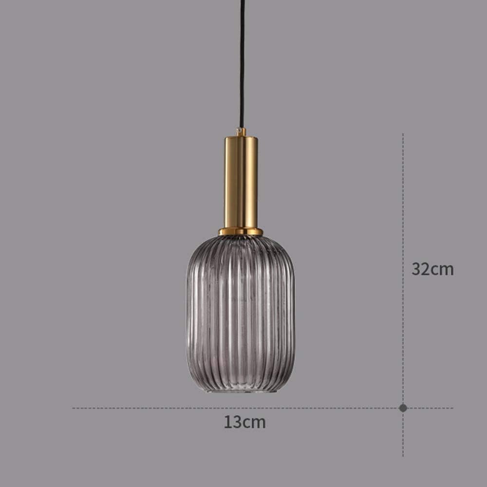 Modern Pendant Light Fixtures for Kitchen Island, Farmhouse Striped Glass Pendant Lighting with Gold Socket, Stylish Ceiling Light for Dining Room and Living Room (5.12”, Grey)