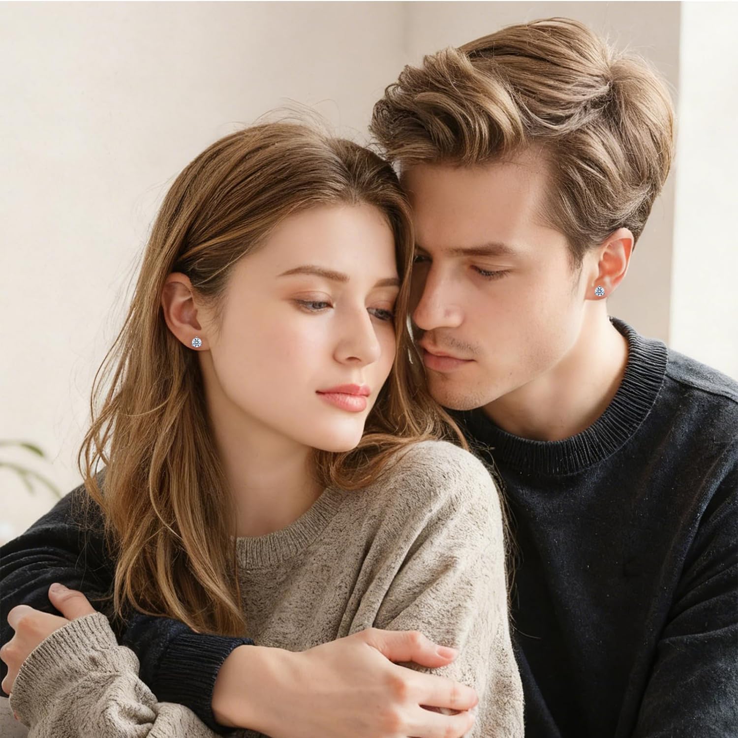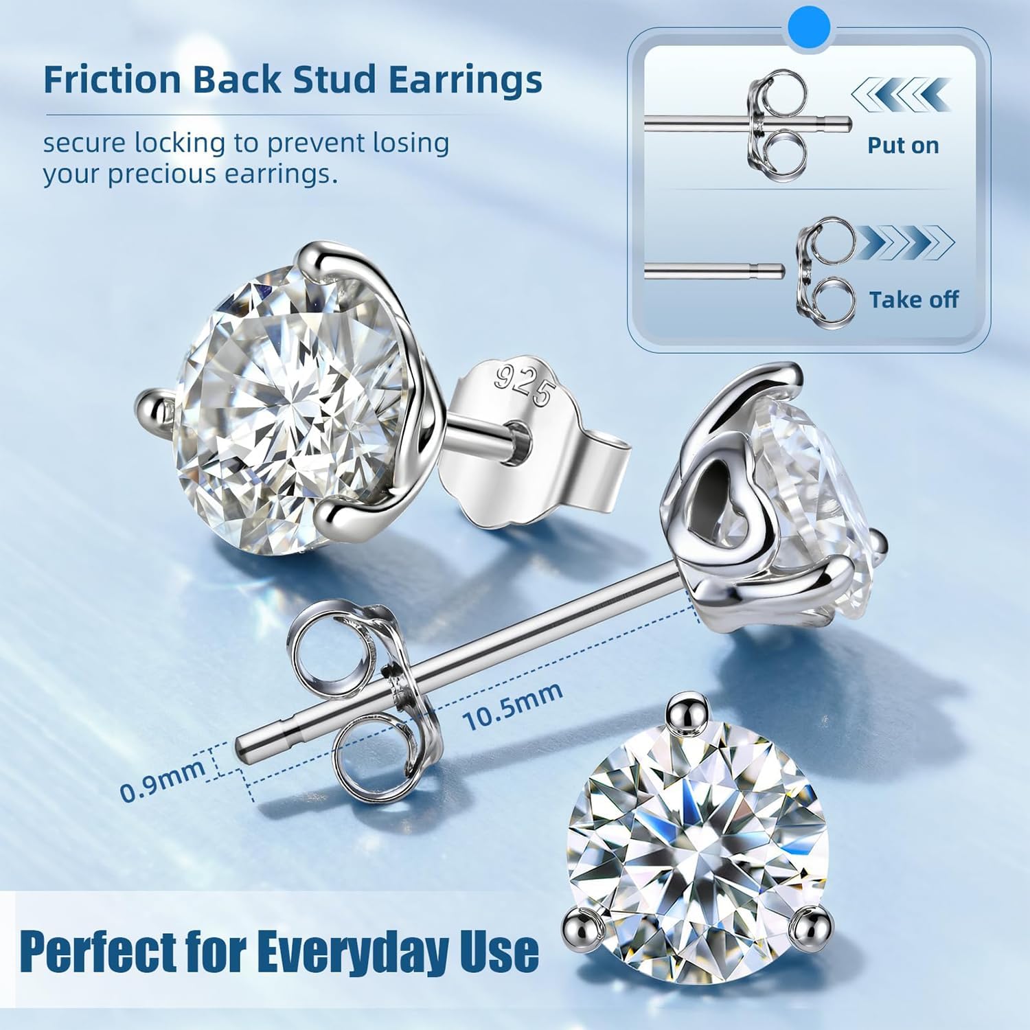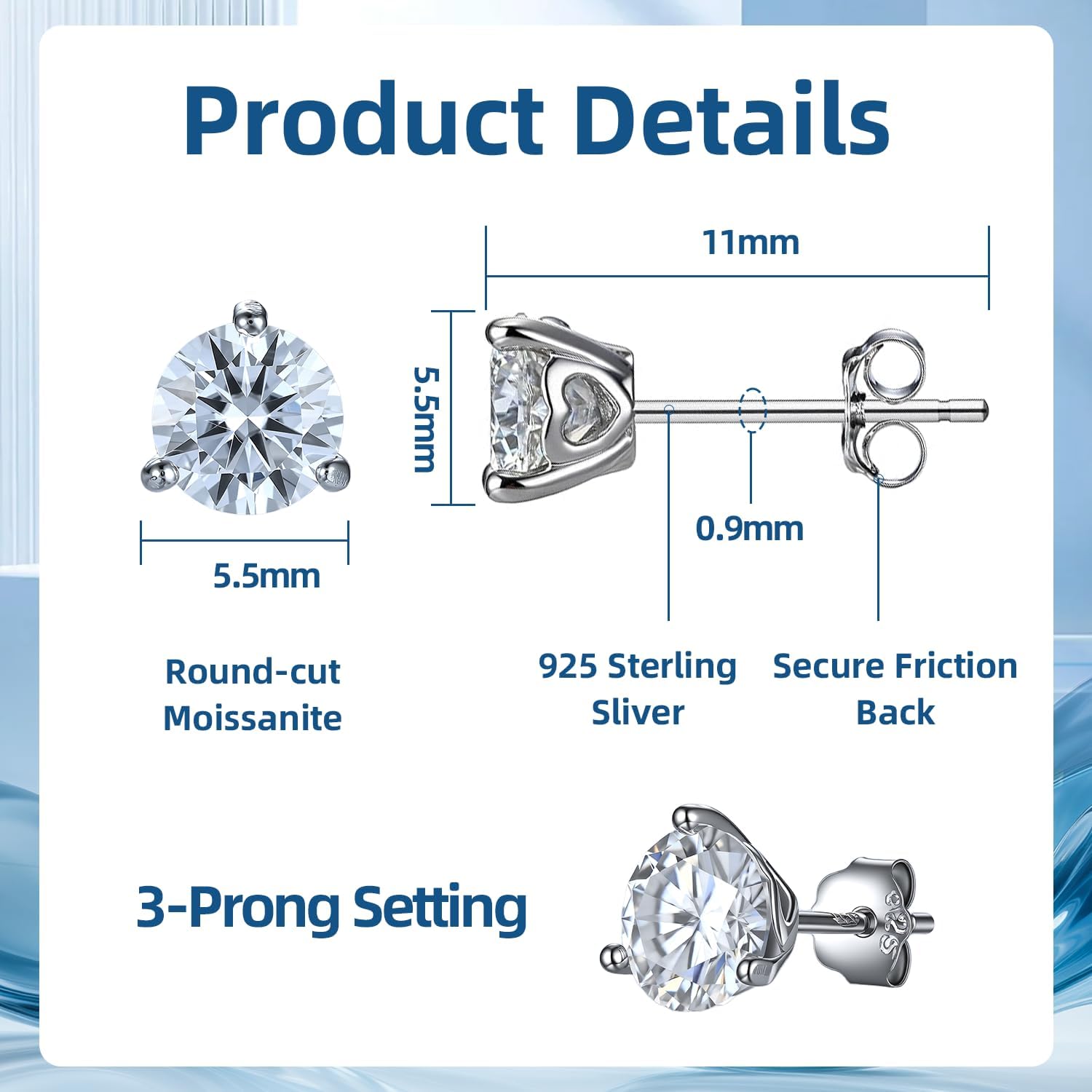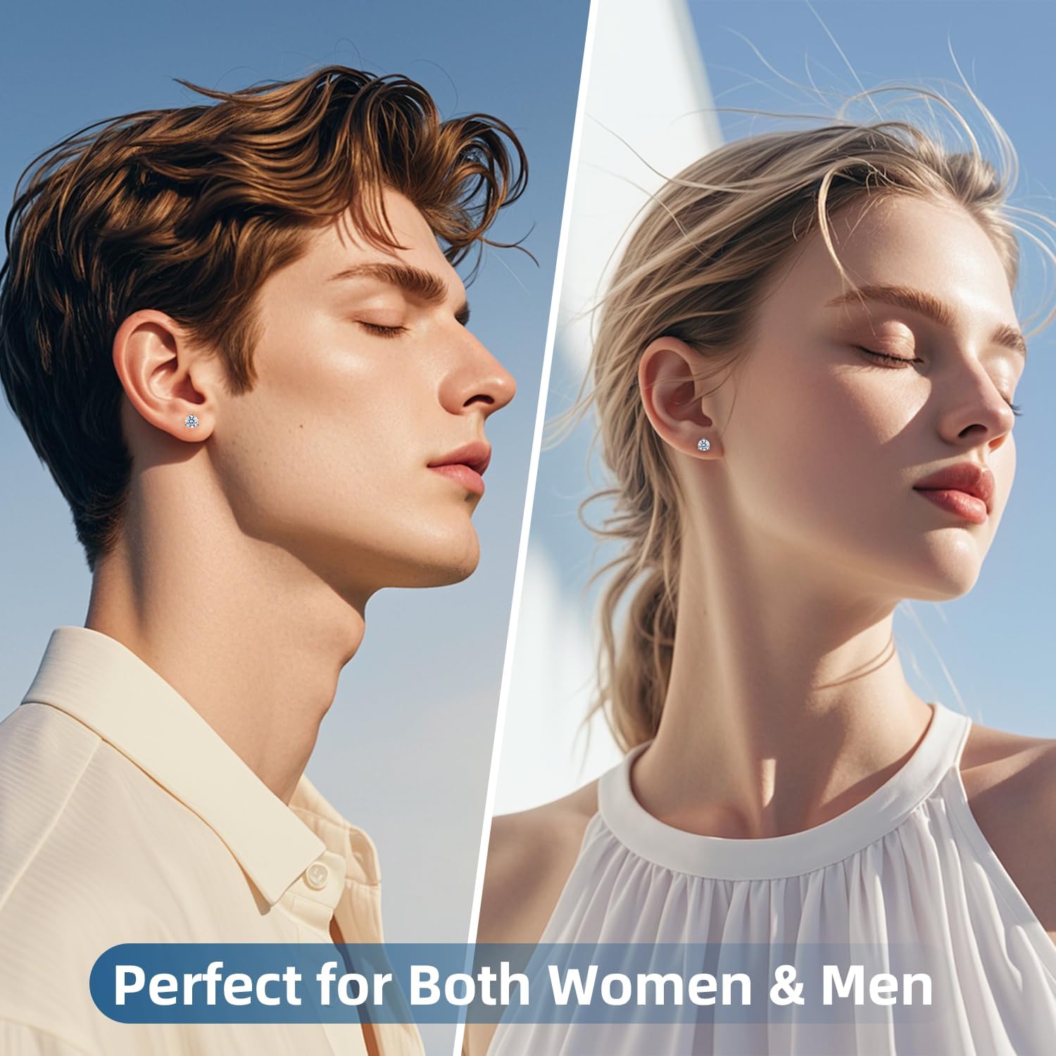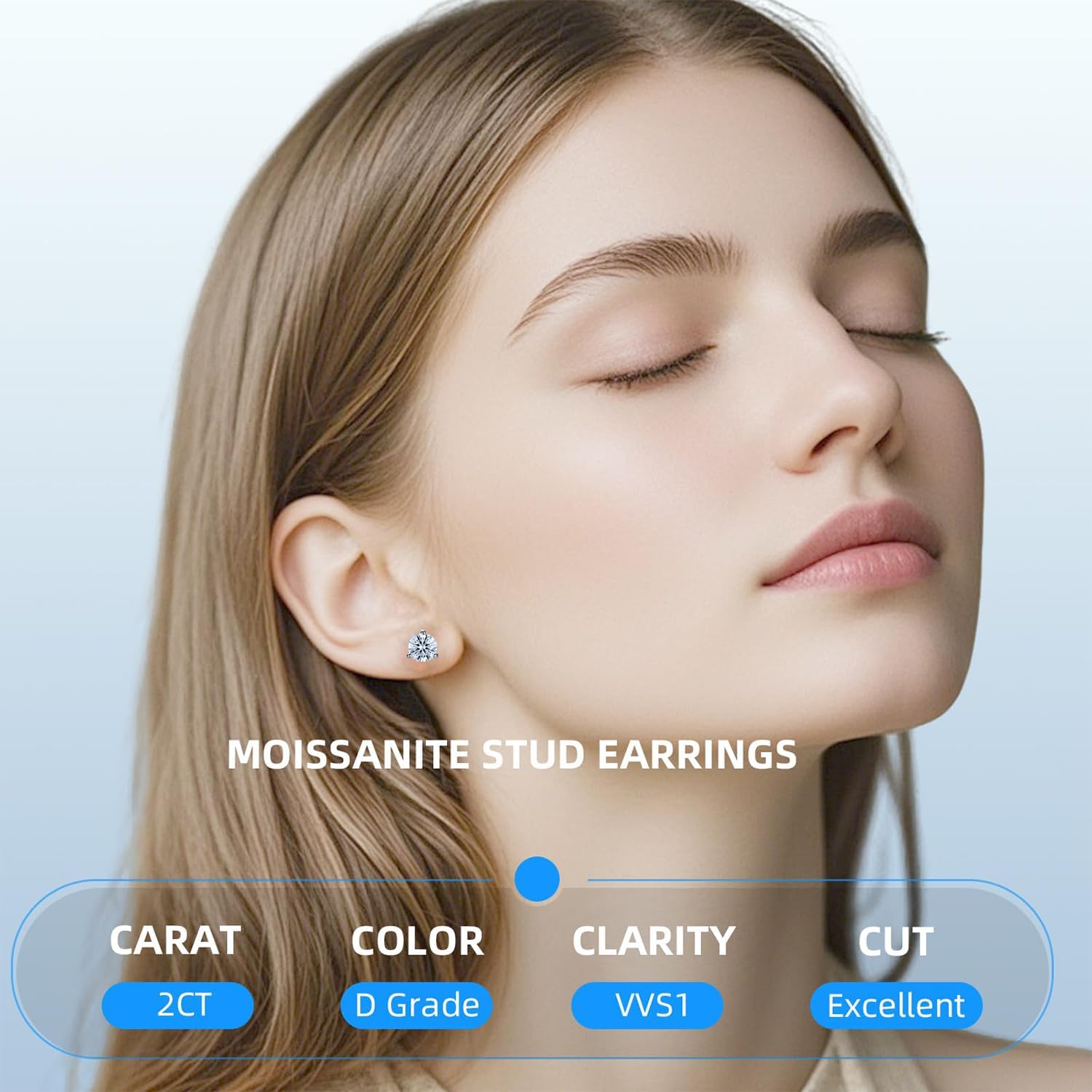Moissanite Stud Earrings, Lab Created Double Halo Design 1 Pair VVSI Quality D Color Round Cut,Moissanite Earrings for Women Men Sensitive Ear Gifts