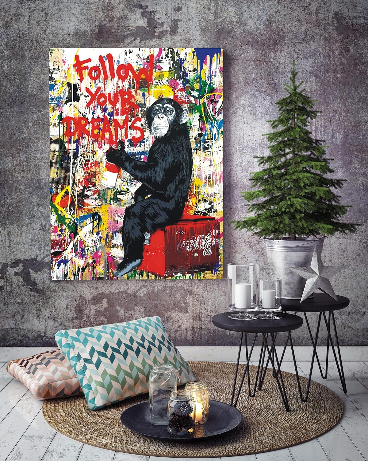 Monkey Street Graffiti Canvas Print Wall Art,-Follow Your Dreams Animal Canvas Art for Living Room Office Wall Decor Home Decoration Framed Ready to Hang,bedroom decor for men