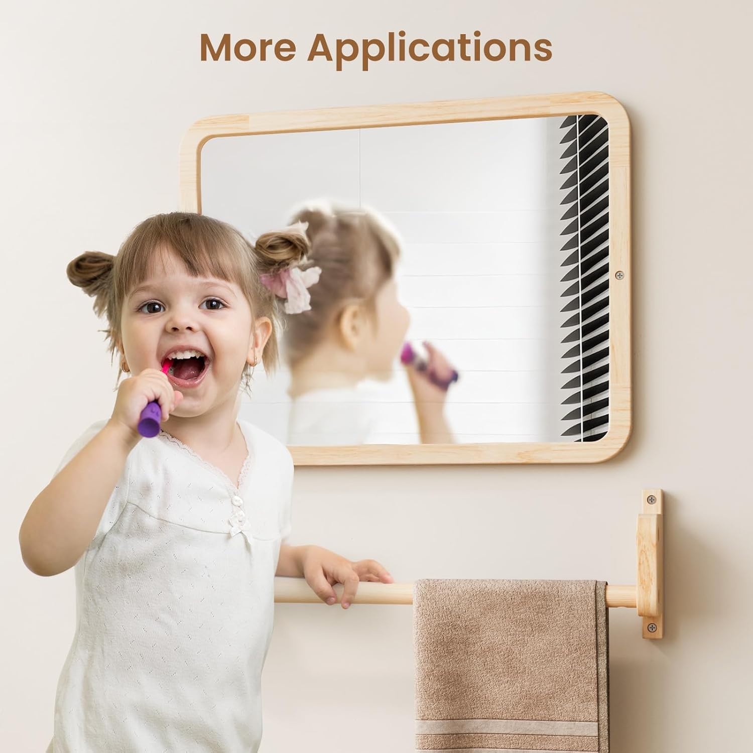 Montessori Baby Furniture: Beyond aiding in walking, this toddler small mirror encourages independent exploration. Once your baby masters walking, transform it into a bathroom mirror or towel rack, or repurpose the detachable frame for photos or art, making it a lasting investment in your child’s growth.(Need help with assembly? Contact Woodtoe support for instant guidance!)