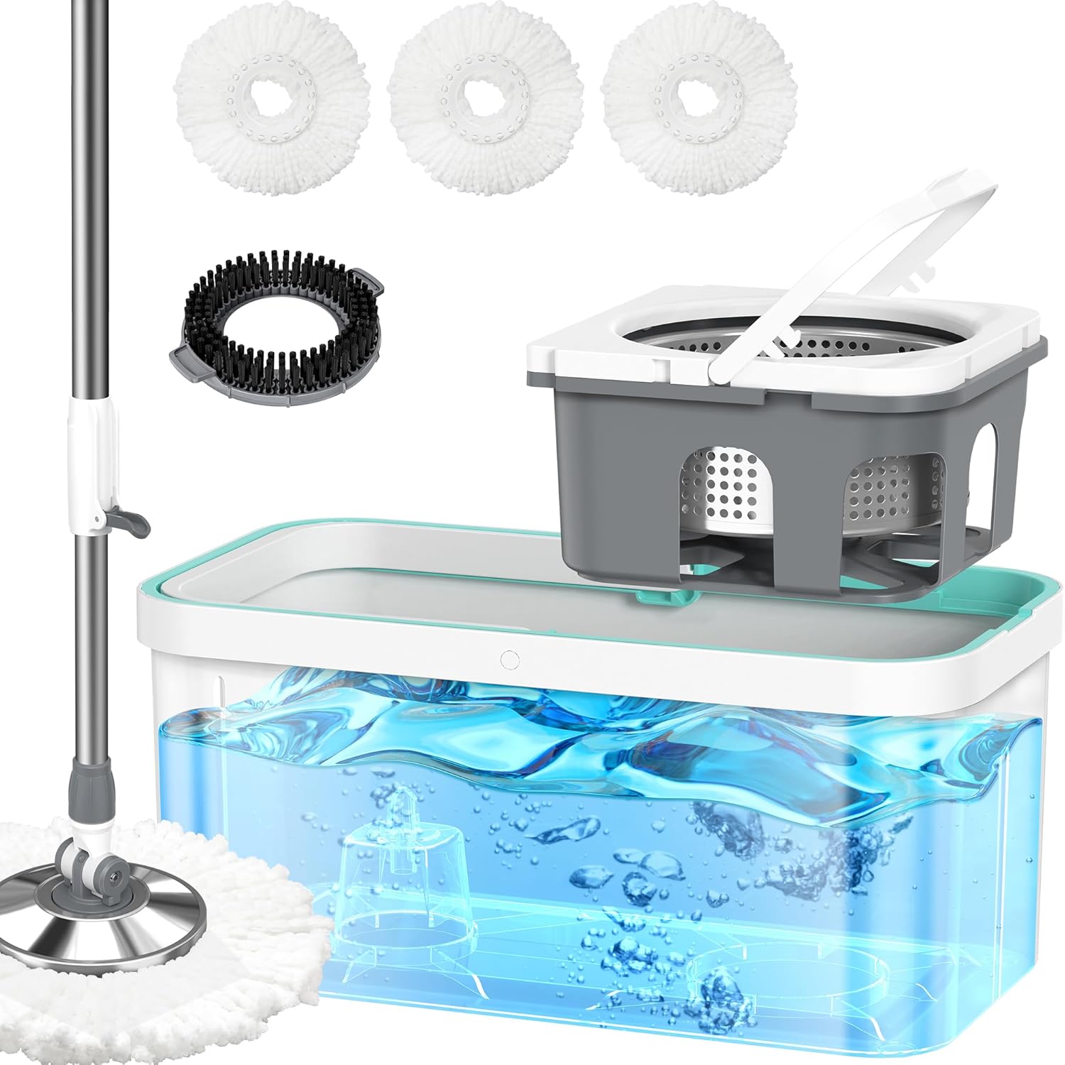 [Large Capacity and Balanced Design] With about 5-gallon capacity, this spin mop and bucket system is perfect for large cleaning tasks while remaining compact enough for easy storage. Whether for big jobs or everyday messes, it makes home cleaning efficient and convenient. Its wide base and evenly distributed design prevents tipping, ensuring a safe, hassle-free cleaning experience