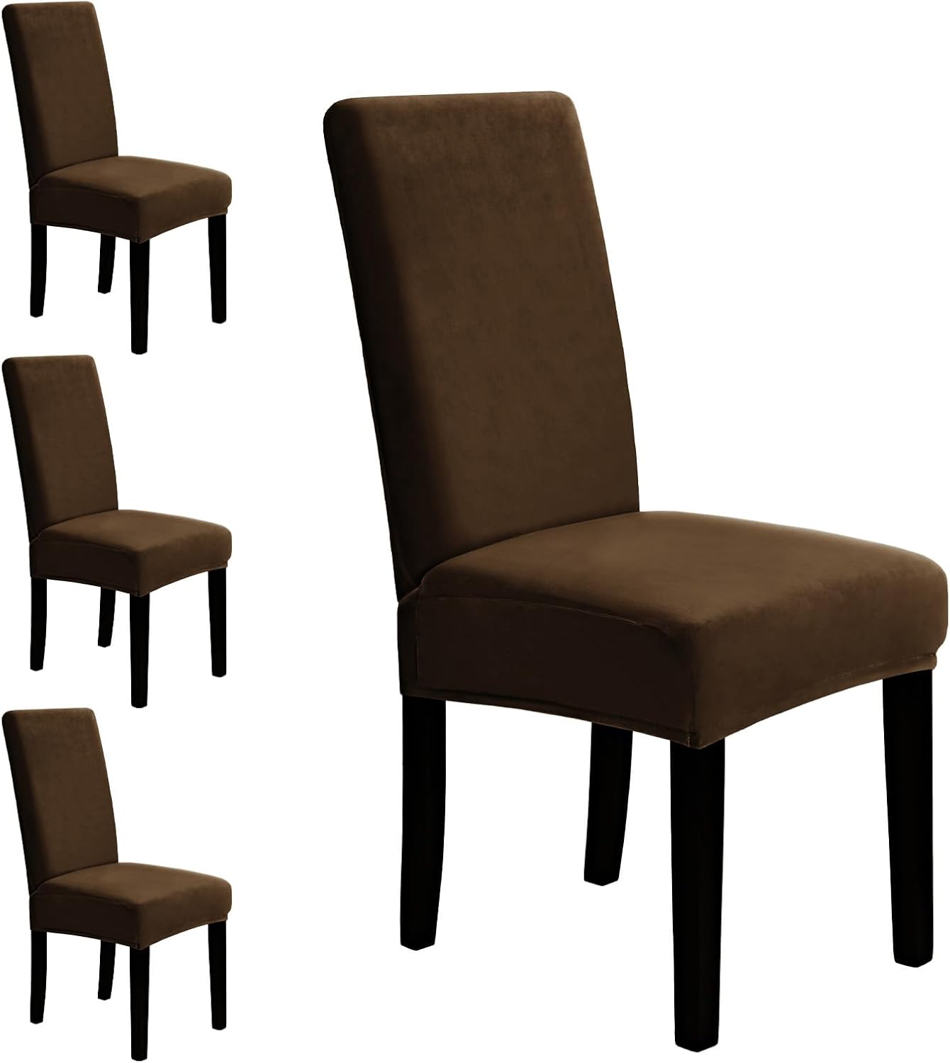 MOSAYT Velvet Dining Chair Covers Set of 4 – Soft Stretch Slipcovers with Thick Removable Fabric for Parsons Chairs, Washable Seat Protectors for Kitchen, Banquet & Home Decor, Coffee