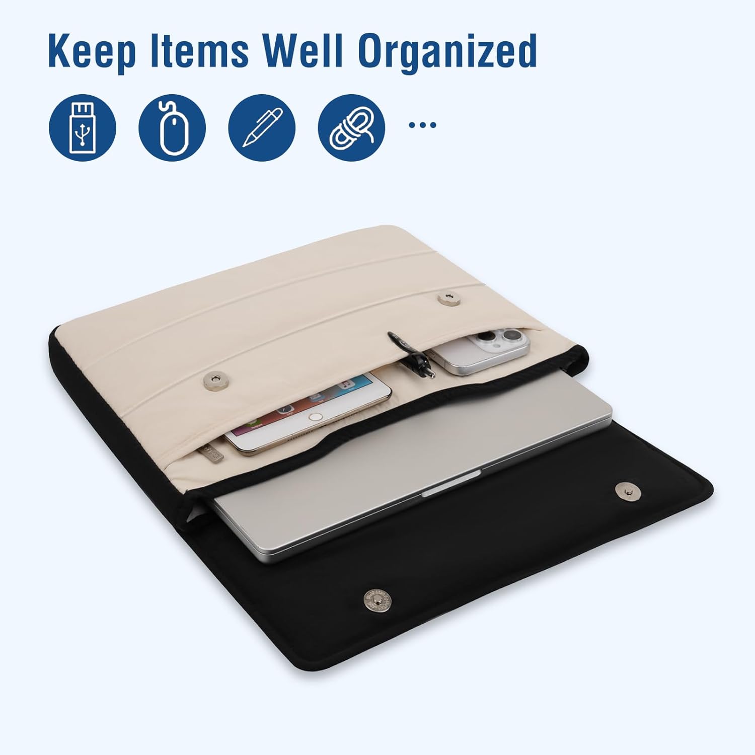 Slim and lightweight; does not bulk your laptop up and can easily slide into your briefcase, backpack or other bag. Envelope flap design with button closure simplifies your process and secures your device. The bag is perfect for working, traveling, daily use and business travel.