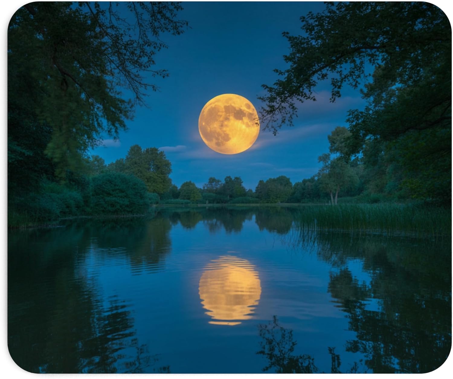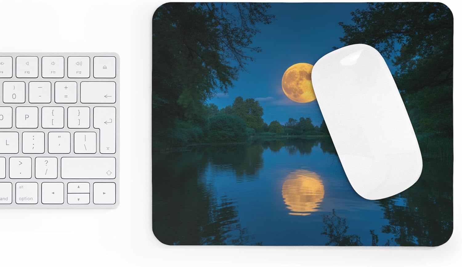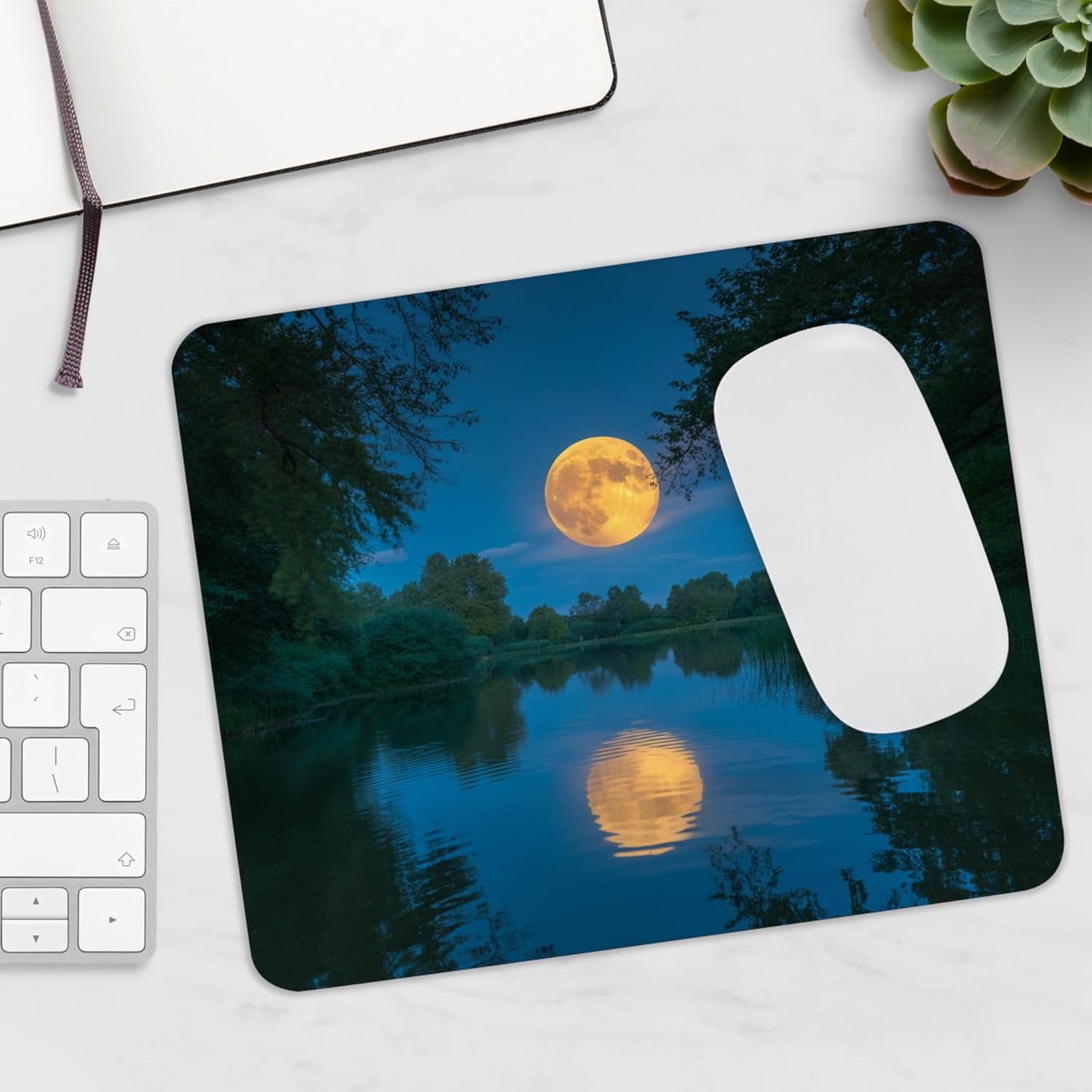 Mousepad Full Moon Reflected on Night Lake with Trees Mystic and Natural Image for Office Inspirational Decoration Mouse Pad Mouse Pad Landscape Tranquil