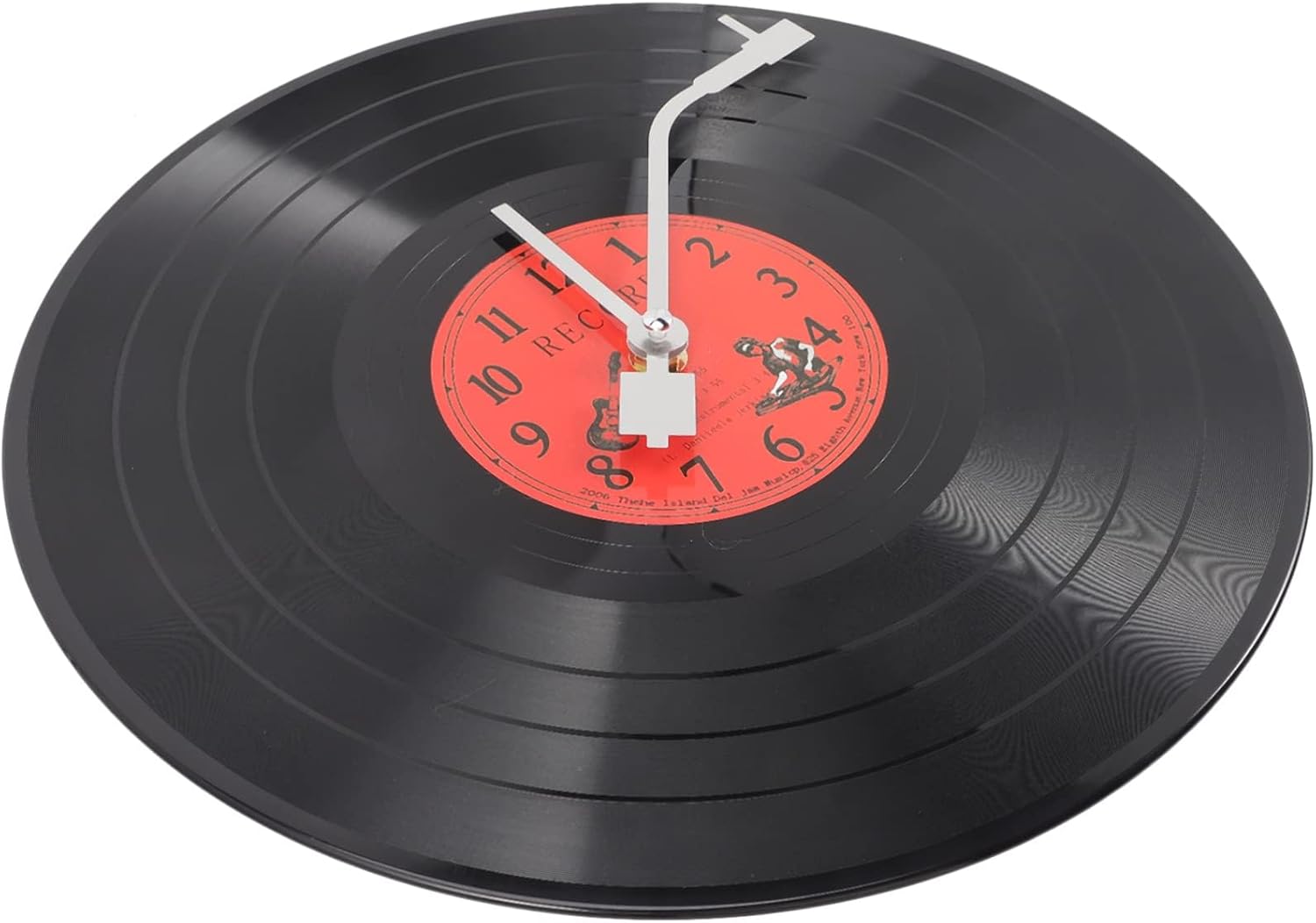 Unique vinyl record wall clock with a cool music theme, perfect for music lovers and enthusiasts.