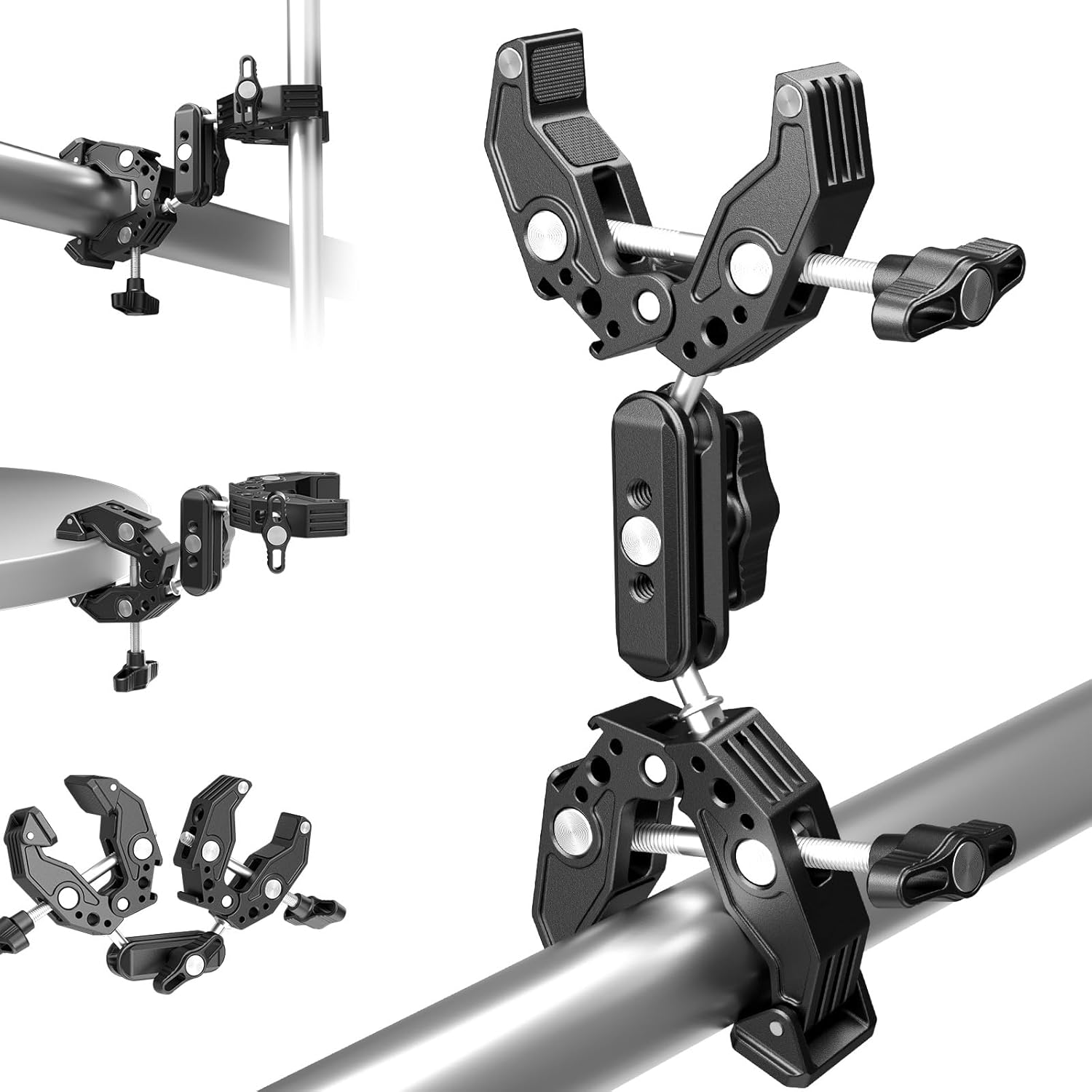 【Magic Arm with Super Clamps】 NEEWER UA036 Magic Arm with Double Super Clamps is a versatile, practical and budget friendly tool that stably mount, flexibly adjust and creatively position your devices on any tubular rods or flat surfaces, perfect for outdoor photography and video recording. Nonslip rubber pads prevent clamps from sliding and protect against scratches