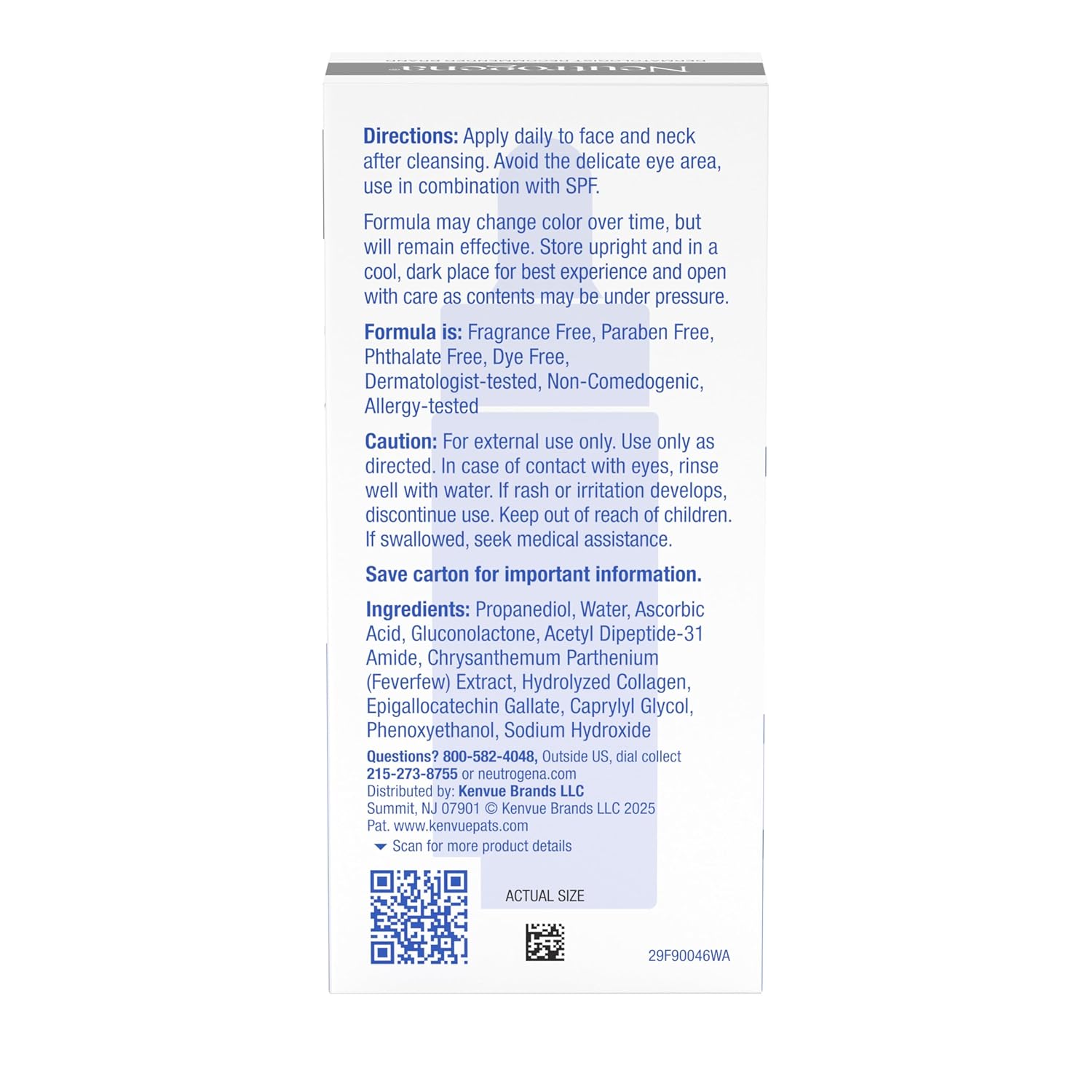 Stronger collagen, plump & glowing skin with Neutrogena Collagen Bank 15% Vitamin C Face Serum. Facial serum strengthens & builds collagen with a high concentration of 15% pure vitamin C. Evens skin tone, improves discoloration and provides an instant glow. Formulated with 2% PHA, a breakthrough, derm-discovered exfoliant and hydrator for younger looking skin without the irritation. Derm grade, high-potency formula dramatically evens skin tone & leaves skin looking glowy & plumper. 100% of users agree skin is instantly glowing & looks plumper*. Liquid gold, non-comedogenic formula is free from fragrance, parabens, phthalates, & dyes & 100% agree layers well under make up. Formulated with a Patented Micro-Peptide Technology that is 2X smaller than leading anti-aging peptides to build collagen. Treat yourself to luxury benefit without the luxury price. Apply Collagen Bank 15% Vitamin C Serum to the face & neck after cleansing & before moisturizing, avoiding the delicate eye area.