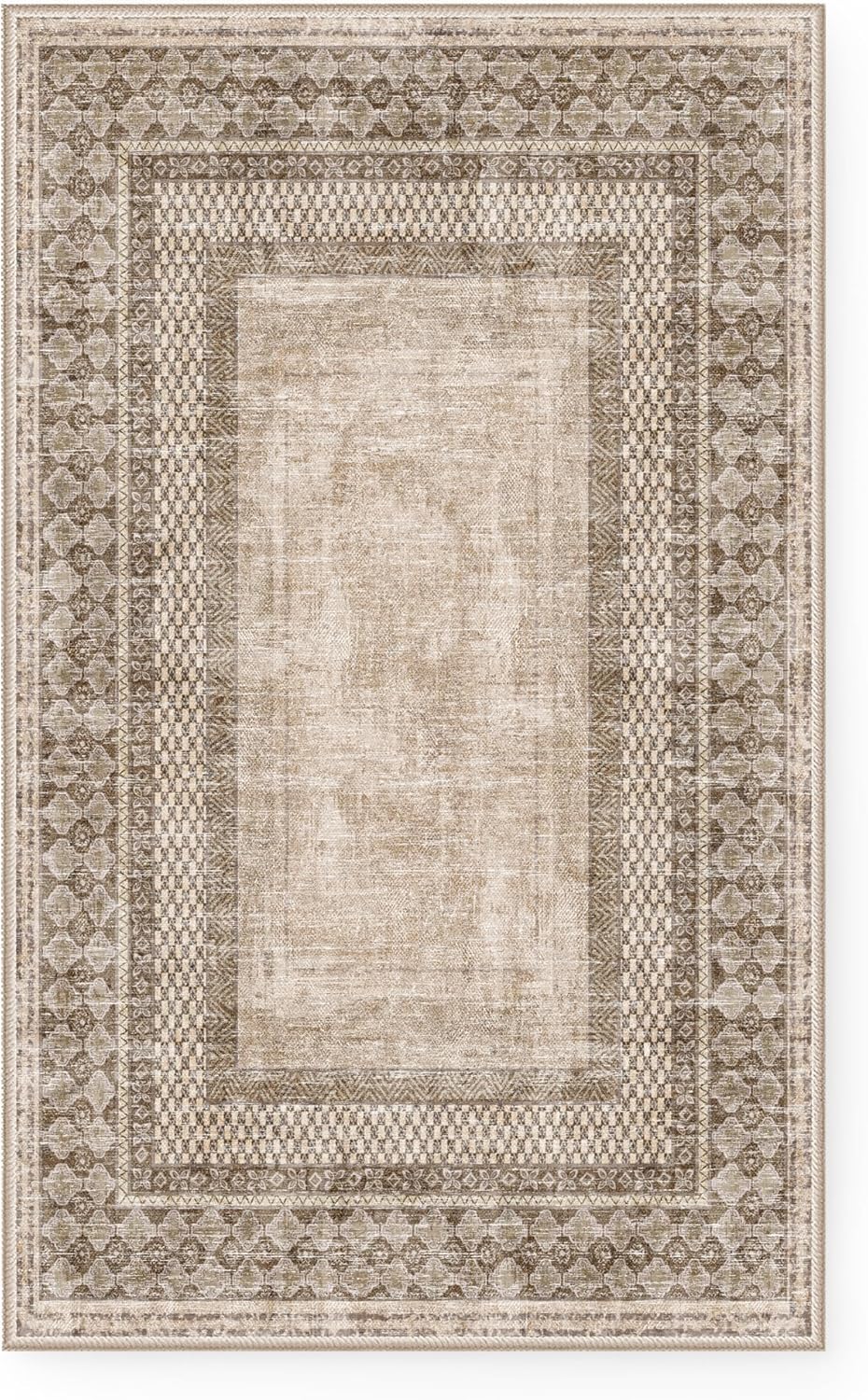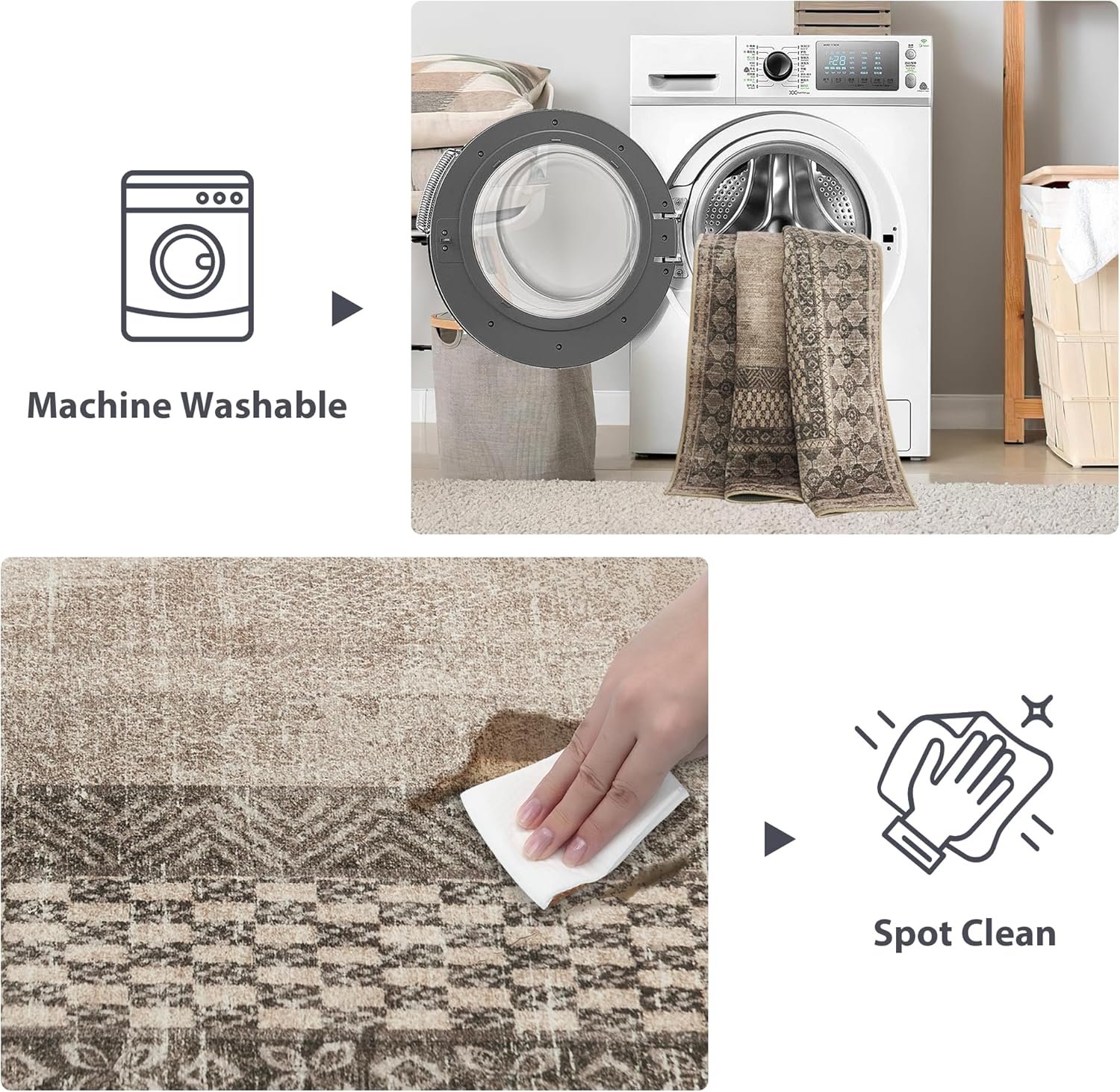 NICETOWN 8×10 Ultra-Thin Brown Oriental Rug for Bedroom, Tumble Washable Area Rugs 8×10, Boho Non-Slip Vintage Living Room Rugs, Oriental Carpet Entrance for Kitchen, Laundry, Bathroom, Bedroom