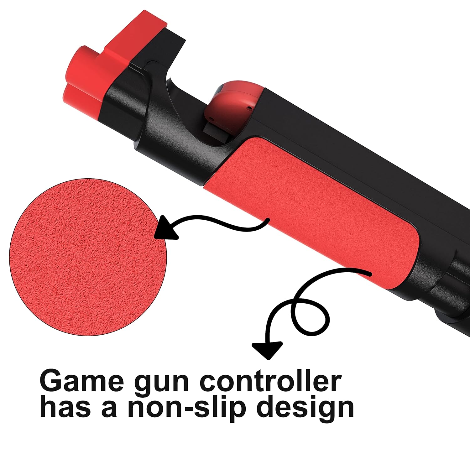 SECURE & NON-SLIP DESIGN – Featuring a built-in anti-slip pad and a sturdy card slot, this game gun controller keeps your Nintendo Switch securely in place. No more worrying about your controller slipping out during intense gameplay. Enjoy a stable and reliable gaming experience every time!