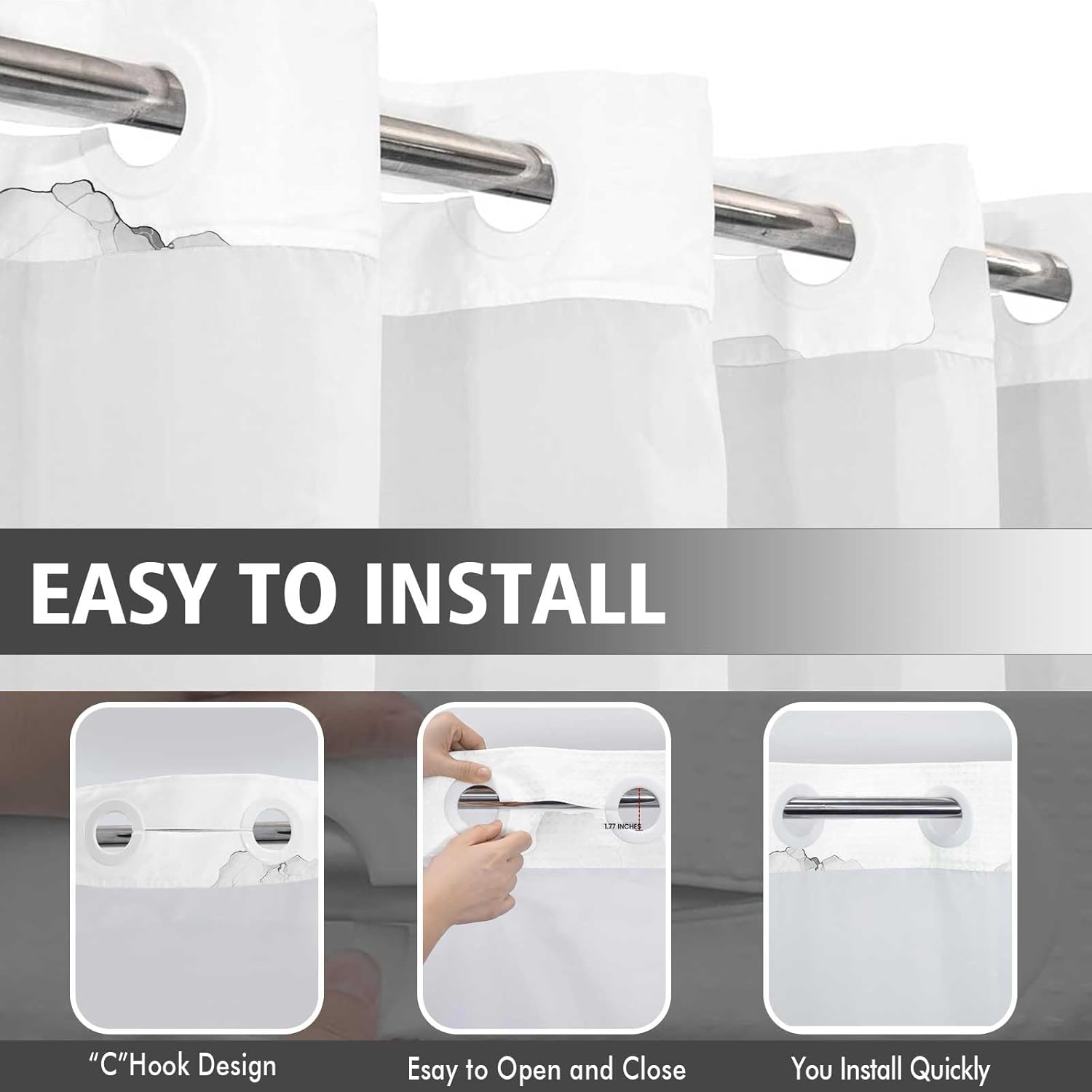 EASY to INSTALL: The no hook shower curtain with snap in liner install in 15 seconds no need to remove the rod,Simple and quick installation