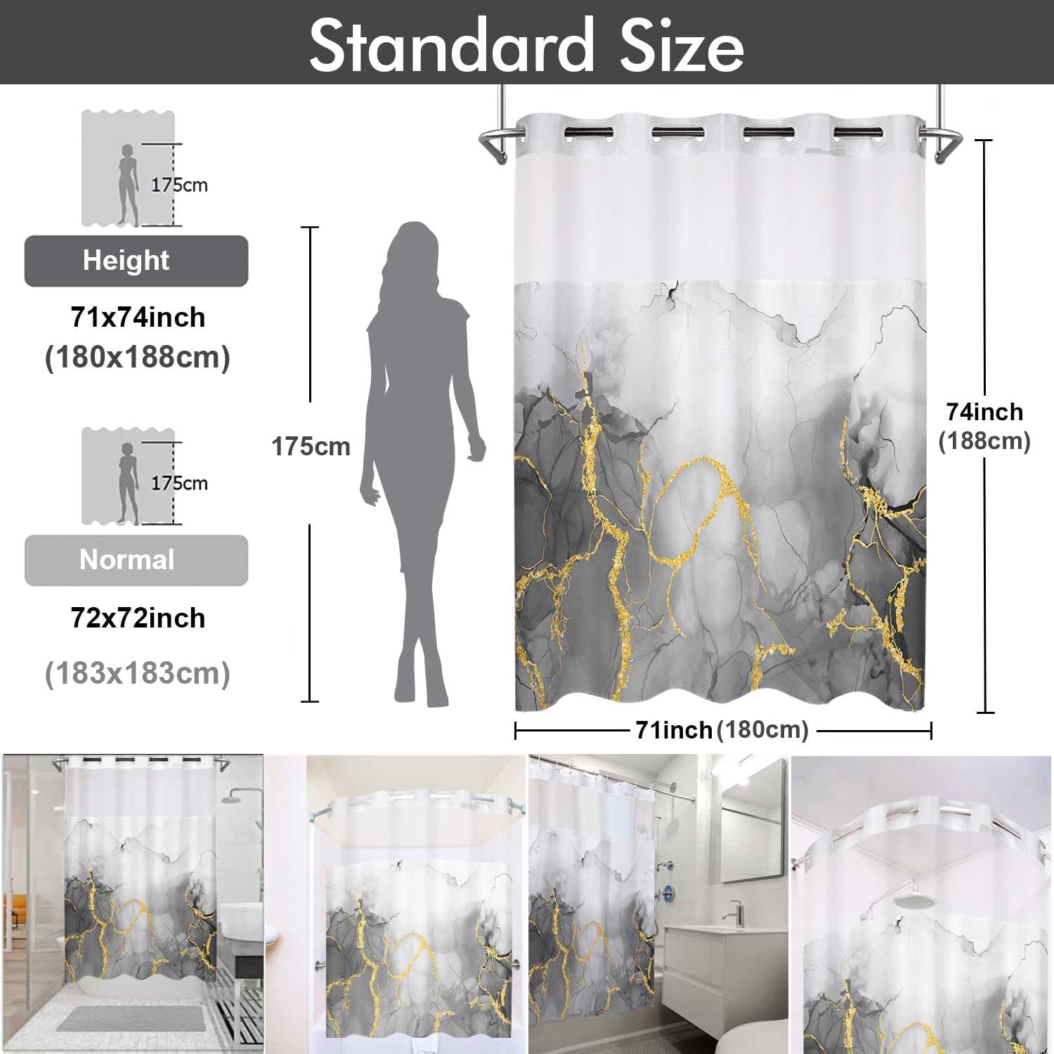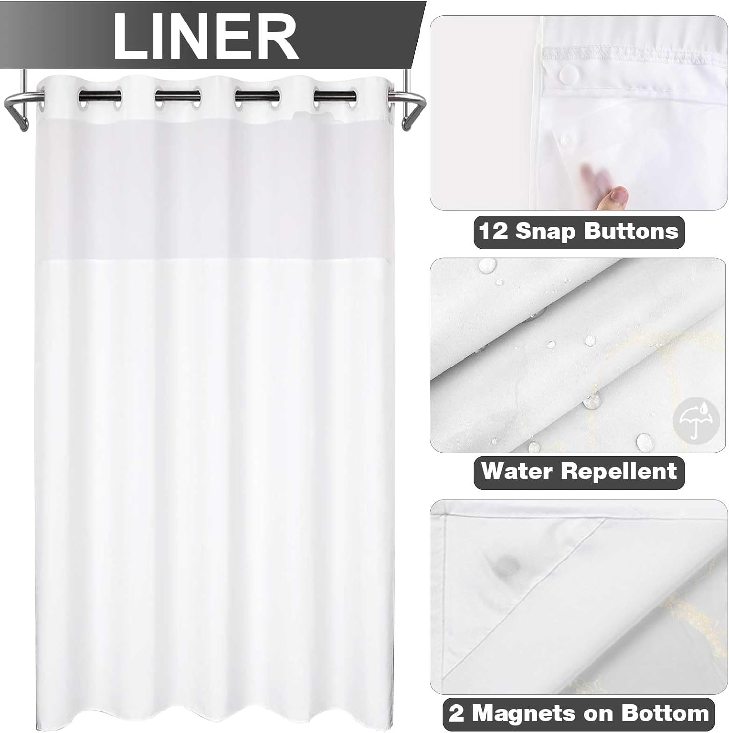 STANDARD SIZE: This no ring shower curtain with snap in liner measures 71×74 inches, suitable for a variety of interior spaces, can be used as a shower curtain, room divider,hotel to separate wet and dry