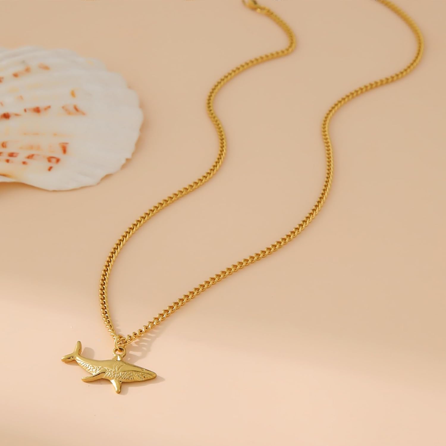 Nojess Gold Shark Necklace for Women 18K Gold Plated Shark Pendant Necklace Stainless Steel Ocean Anima Fish Necklaces Minimalist Jewelry