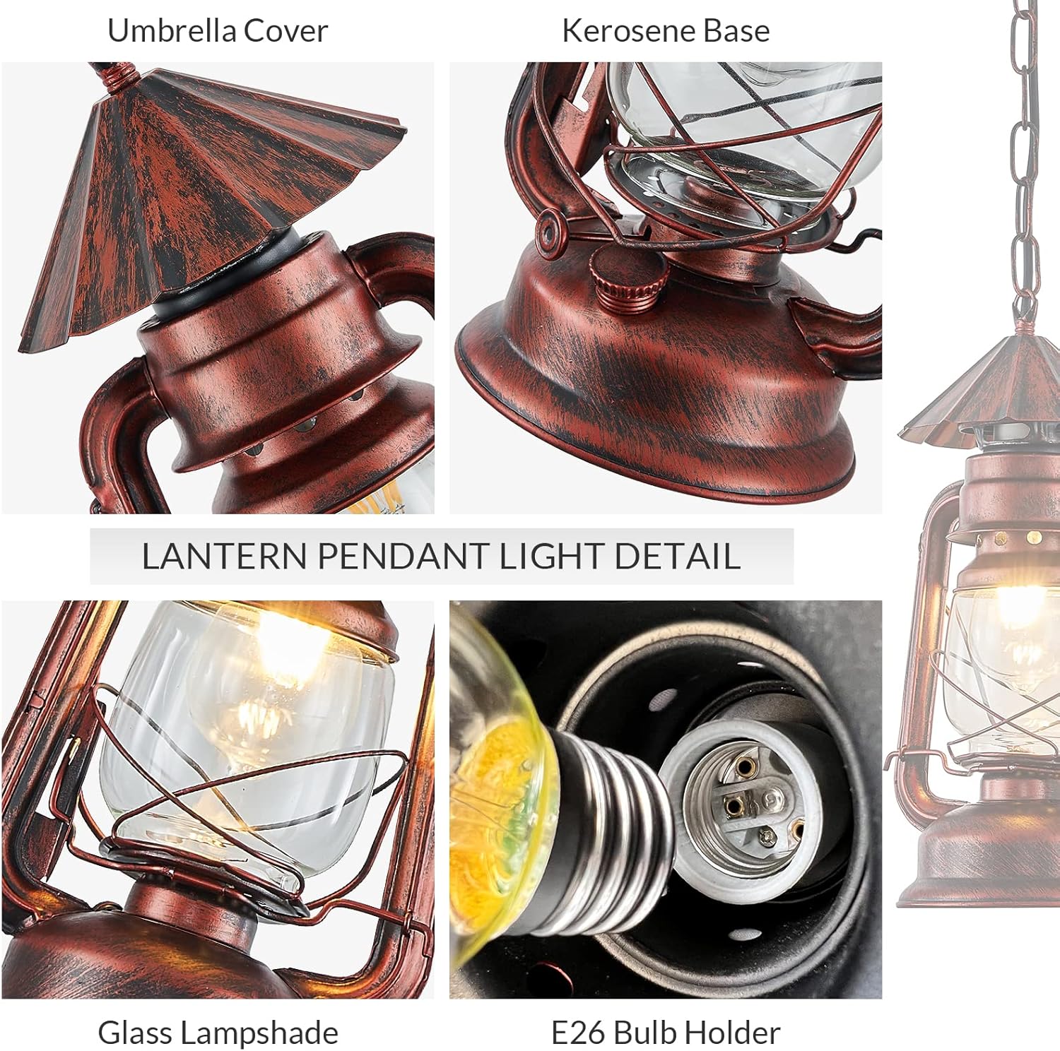Elevate Your Space with Rustic Elegance: Experience the warm and inviting ambiance of lantern light fixture, crafted in a captivating red bronze lantern style, designed to infuse your surroundings with a cozy and romantic aura.