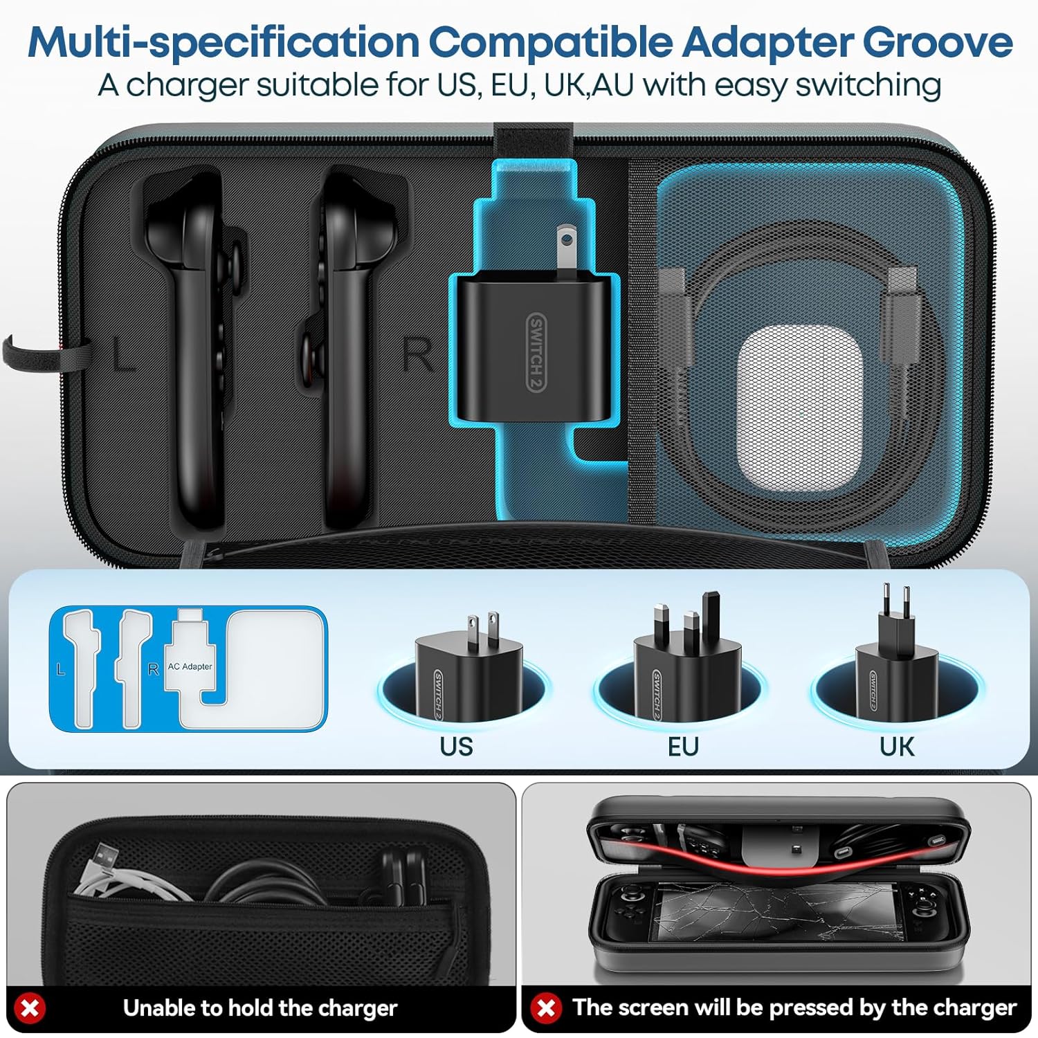 Designed for 2025 Nintendo Switch 2 Version – This switch 2 case is suitable for new 2025 nintendo switch model. Please noted that switch case will be a bit large for 2017 Switch and 2021 switch OLED and switch lite version. Build with soft microfiber interior and perfect combined with hook and loop, switch portable case can protect nintendo switch screen from damage in a sudden severe crash.