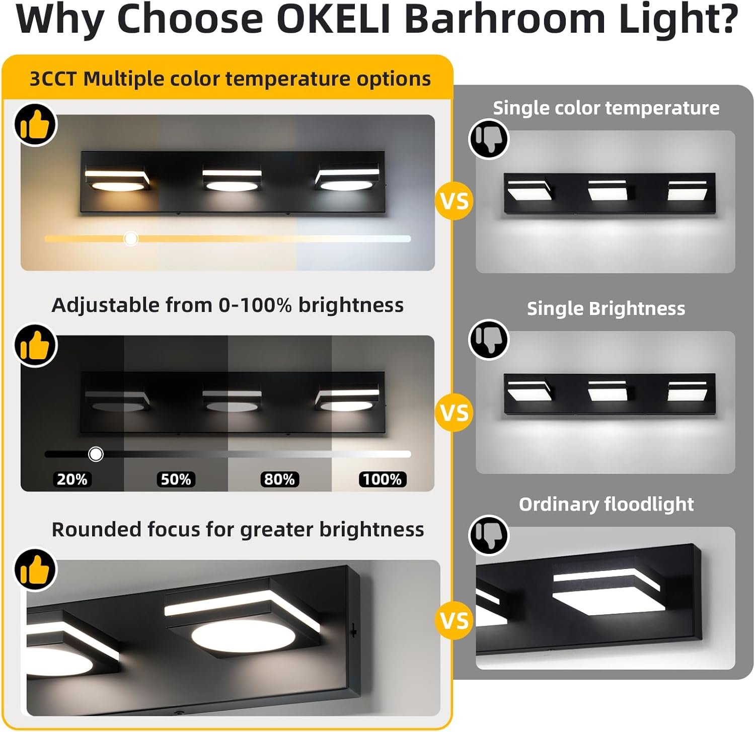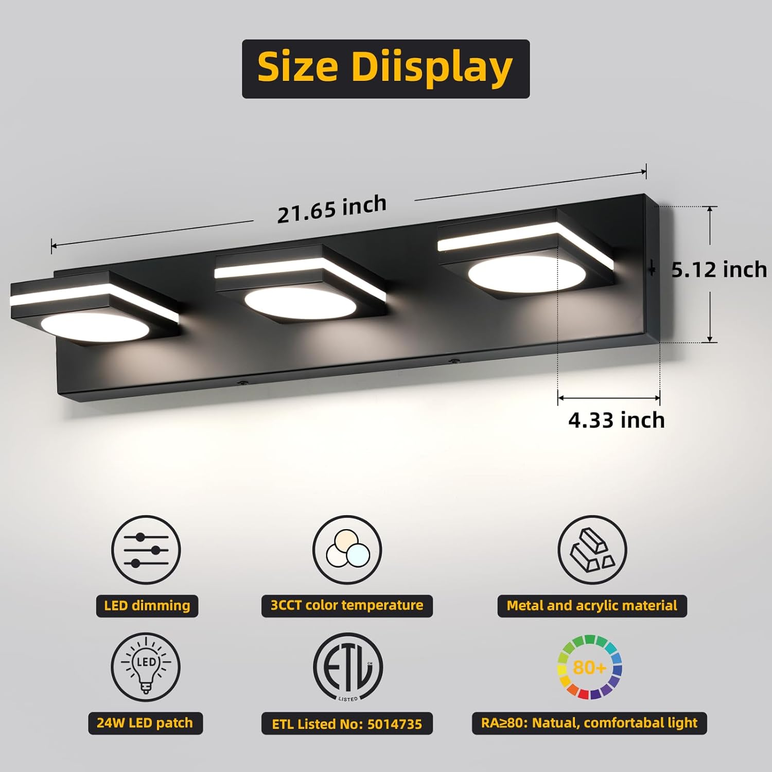 Durable & Rust-Resistant: Crafted from premium matte black stainless steel and high-transmittance acrylic, this vanity light is built to last and resist rust, ensuring long-lasting beauty in your bathroom.