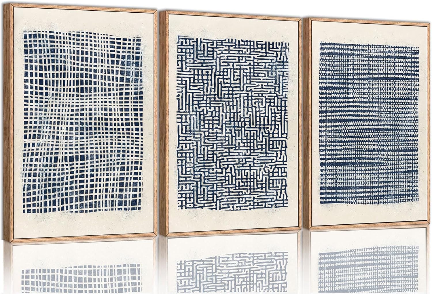 【Neutral Abstract Navy Blue Wall Art】 The OKUDOLIT Modern Abstract Framed Navy Blue Canvas Wall Art Set includes three 16″x24″ framed pieces. With geometric lines, boho elements, and a contemporary design, this set blends mid-century aesthetics with modern elegance. The rich navy blue tones paired with neutral accents make these pieces ideal for enhancing bedrooms, living rooms, dining rooms, corridors, offices, hotels, cafes, or even farmhouse-style decor.